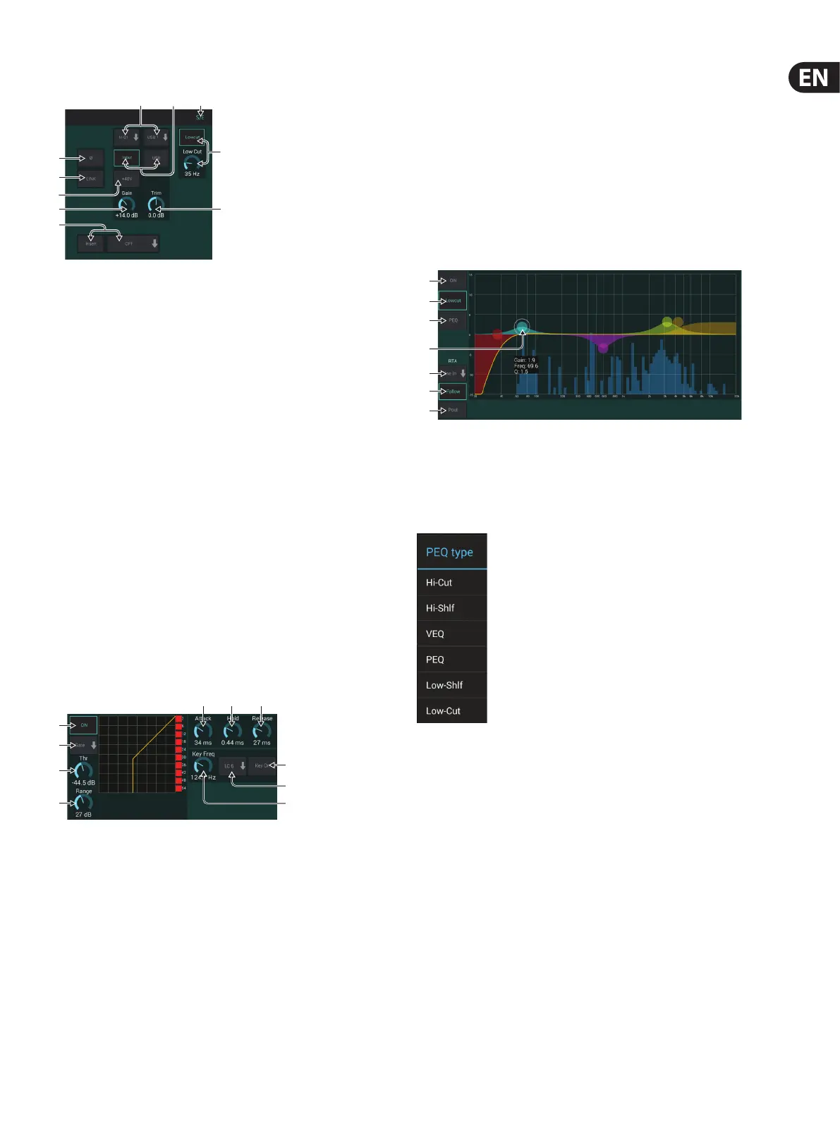 9. Select a low cut, high cut or mid peak frequency and bandwidth/slope for