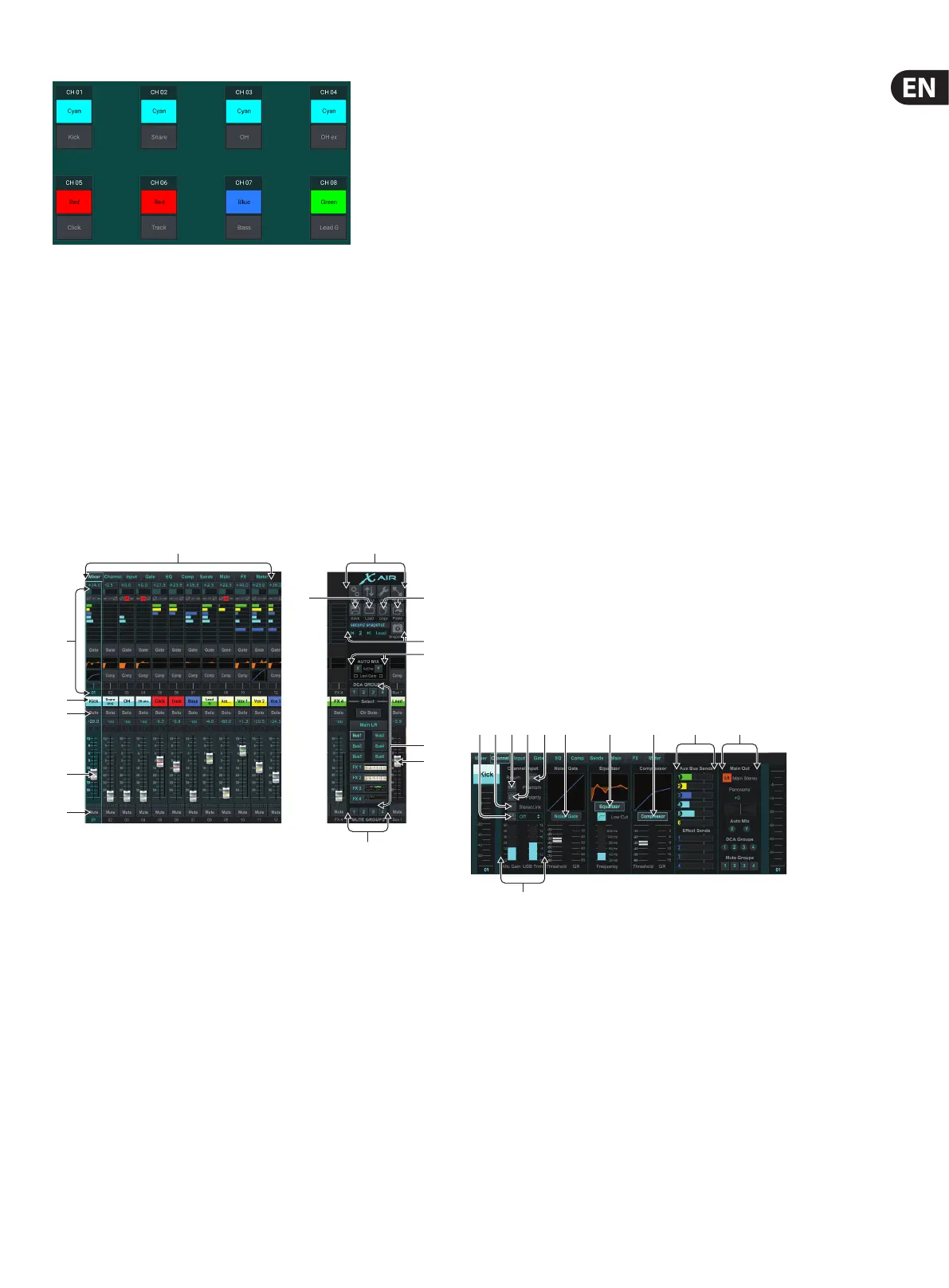11. Engage the Auto Mix X and Y buses here. See section 7.14 for details.
