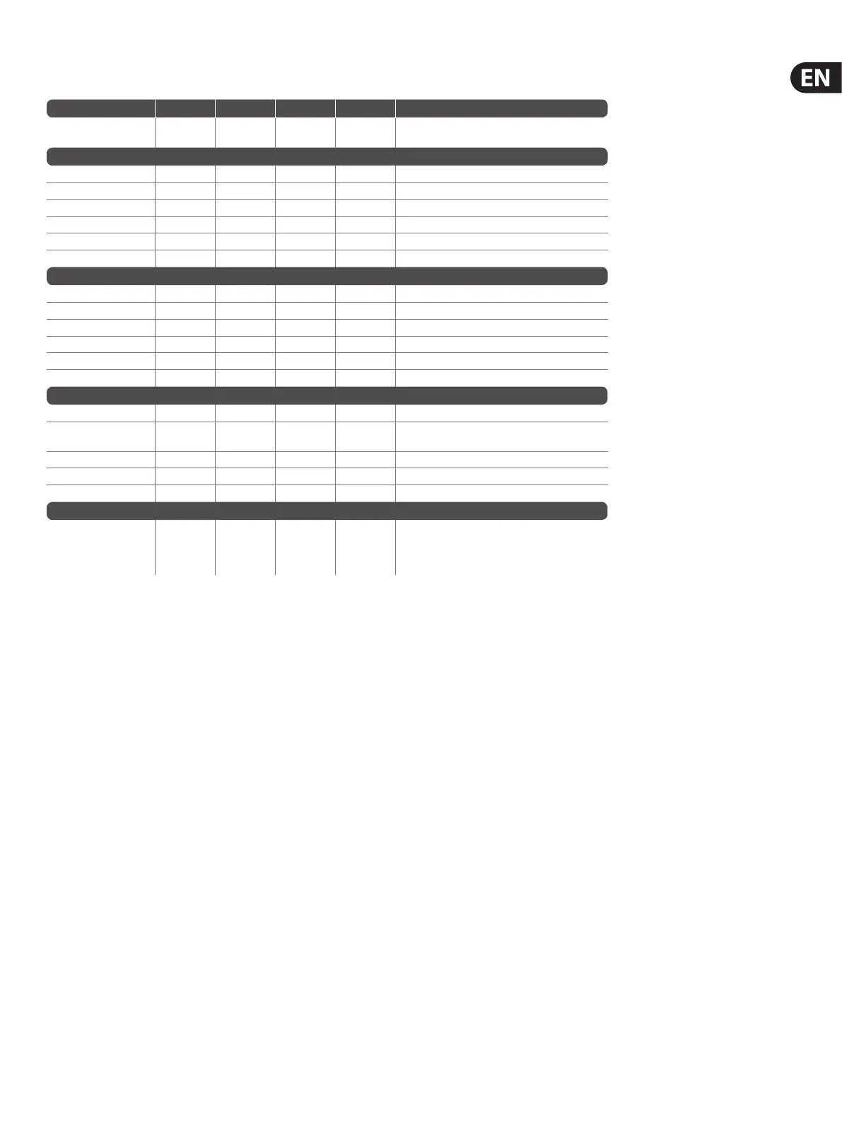 CH Faders 1 CC 17-20 0...127 FX1-4 Return (stereo)