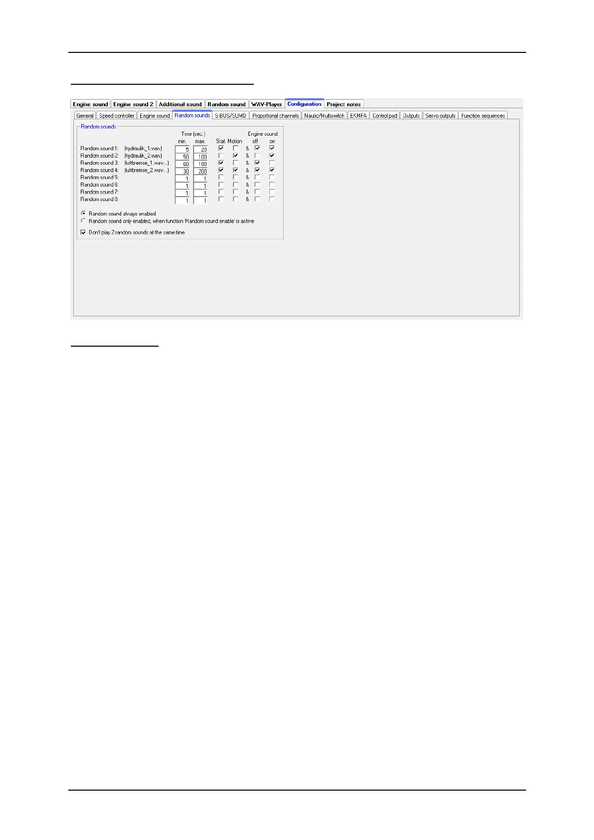 With the checkboxes it is also possible to define conditions when random sounds