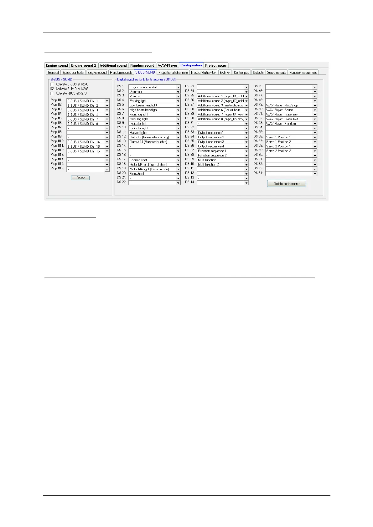 Configuration - S-BUS / SUMD - Digital switches (only for Graupner SUMD3)
