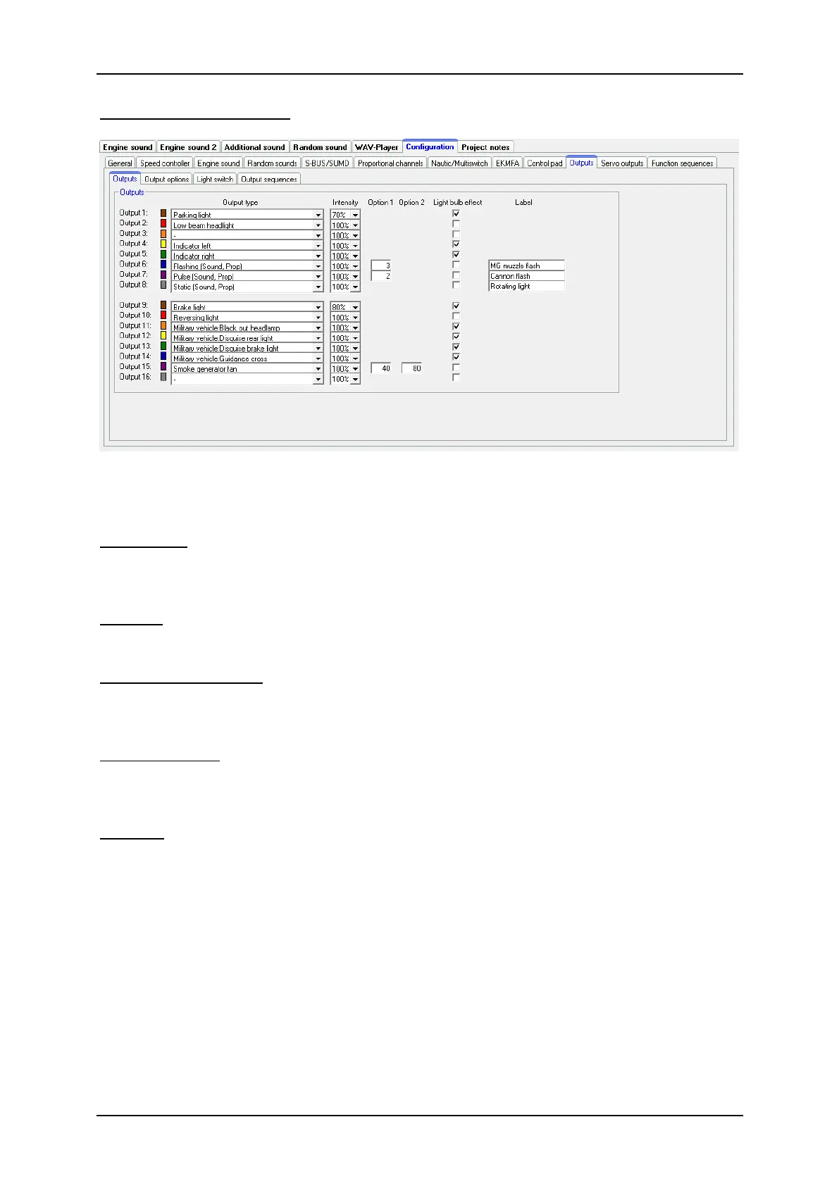 Optionally, a light bulb effect can be activated for each output. This behaves an LED