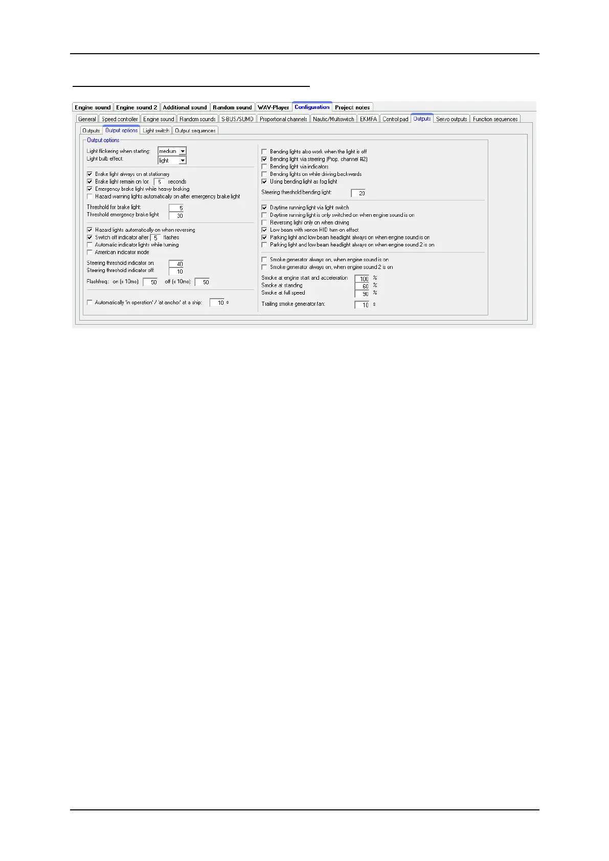 If the function “Light flickering when starting“ is activated, all 16 outputs will flicker