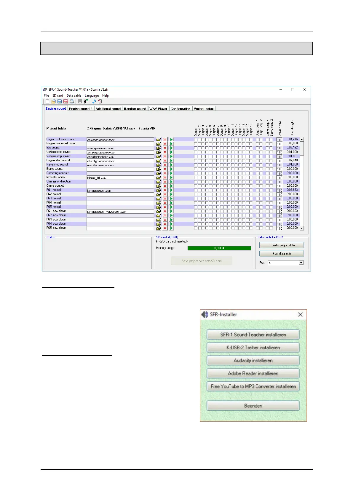 With our software „SFR-1 Sound-Teacher“ the module can be configured and sound
