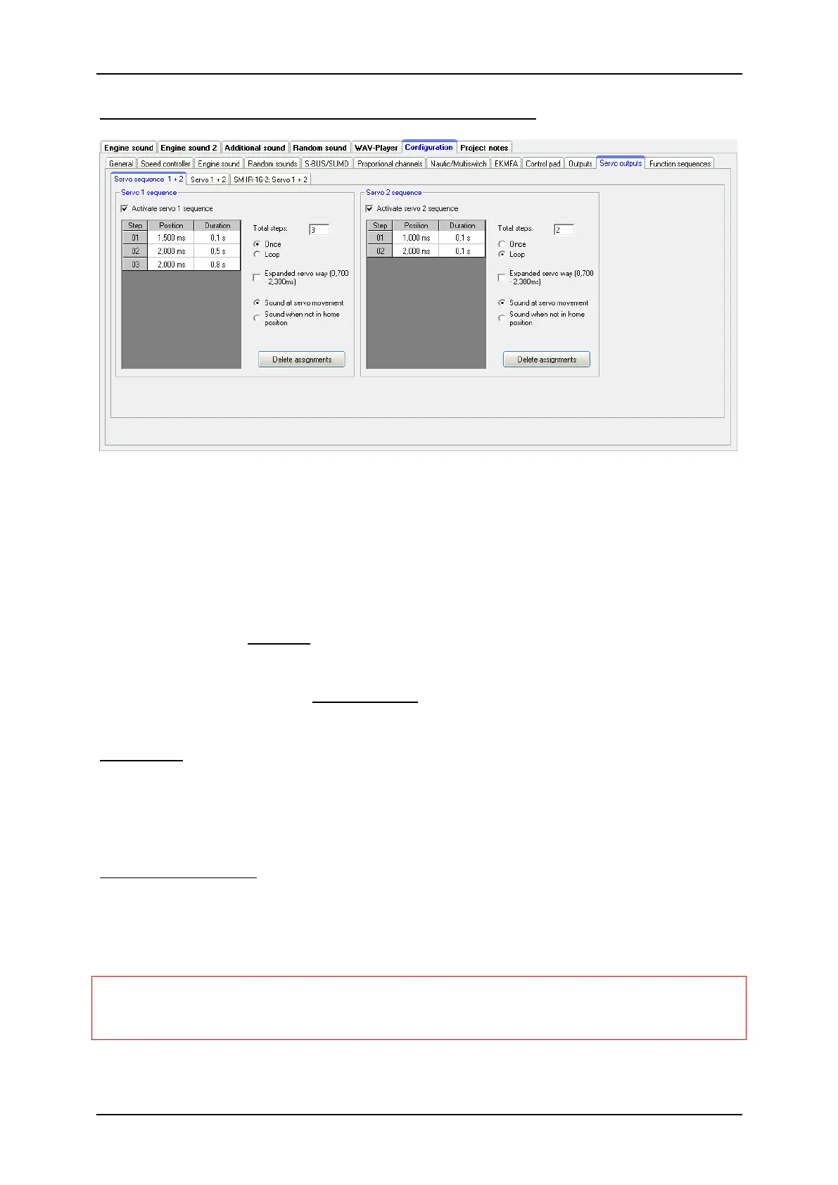 Configuration - Servo outputs - Servos sequence 1 + 2
