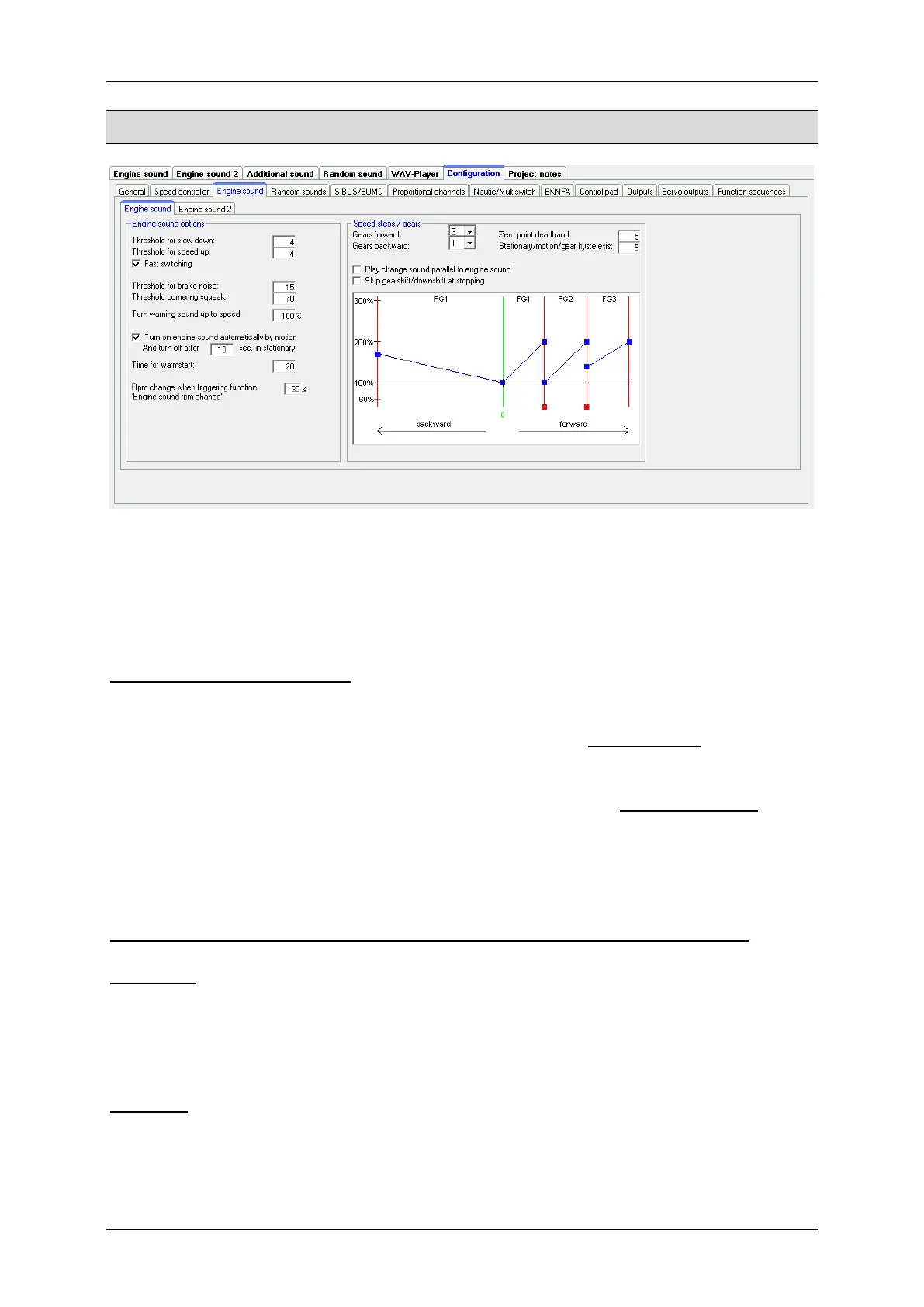 With the driving sound diagram you can set: