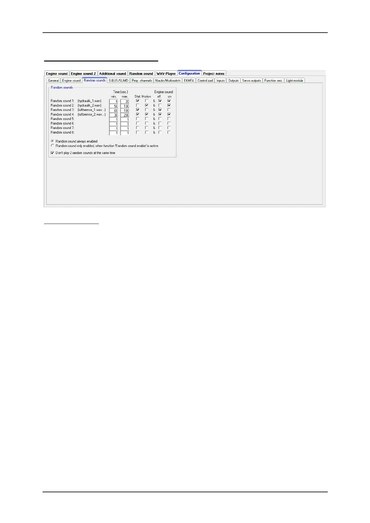 If a random sound should be played, at least one checkbox at each side oft the „&“