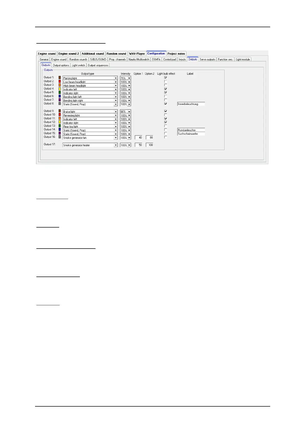 Optionally, a light bulb effect can be activated for each output. This behaves an LED