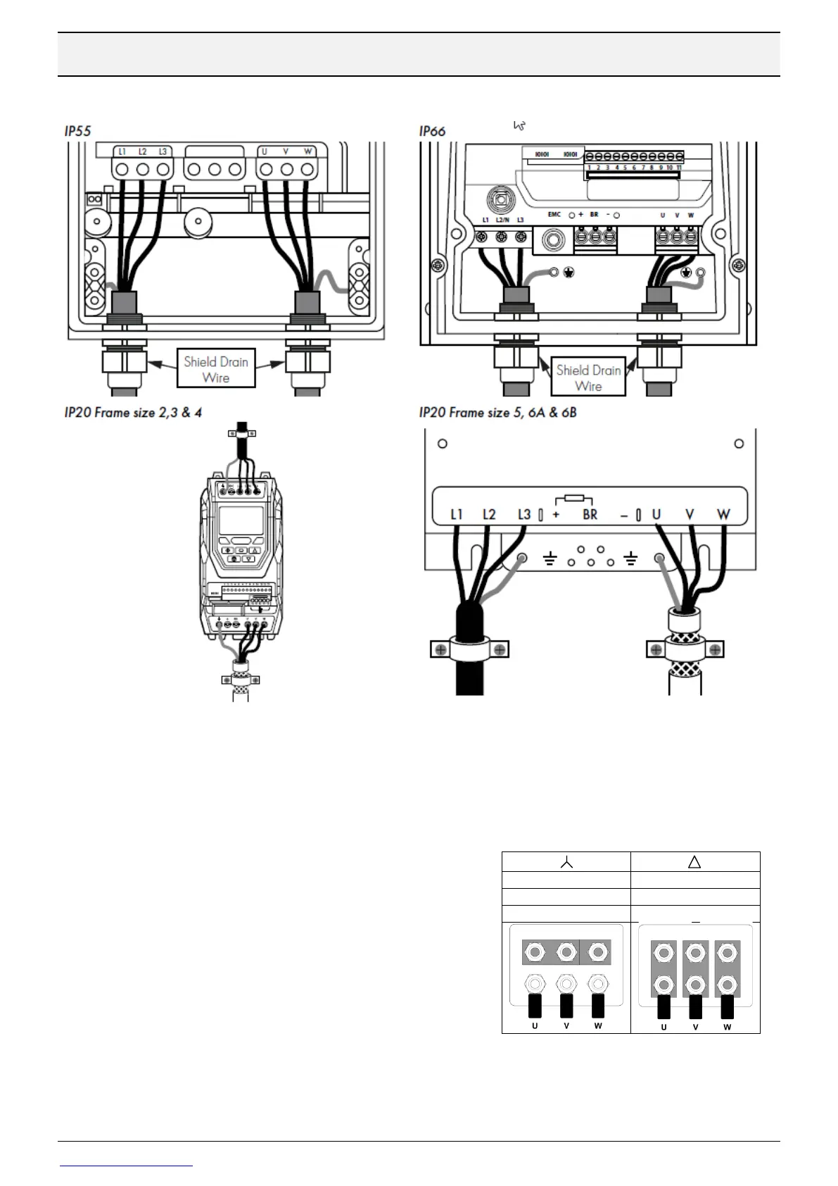 • Motor cable must be a symmetrical shielded cable where the screen covers at least 85% of the