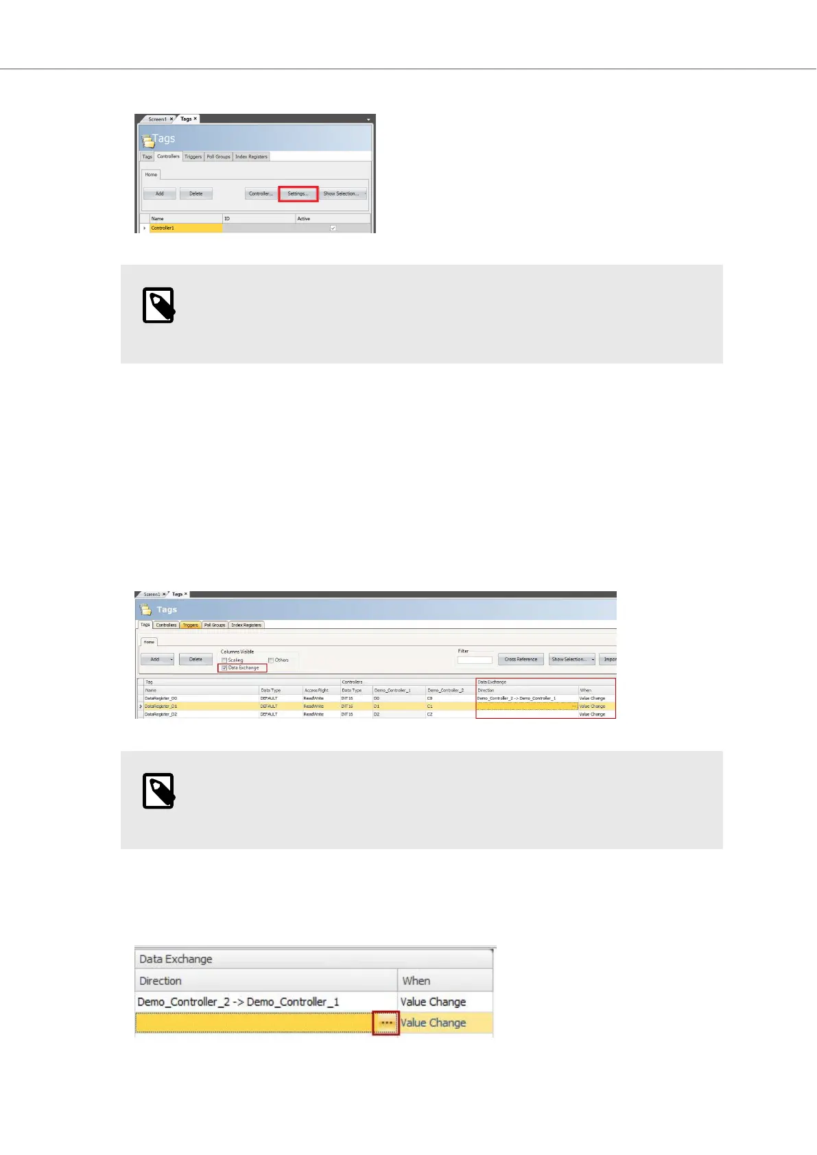 To be able to configure data exchange, at least two controllers must be configured in the project