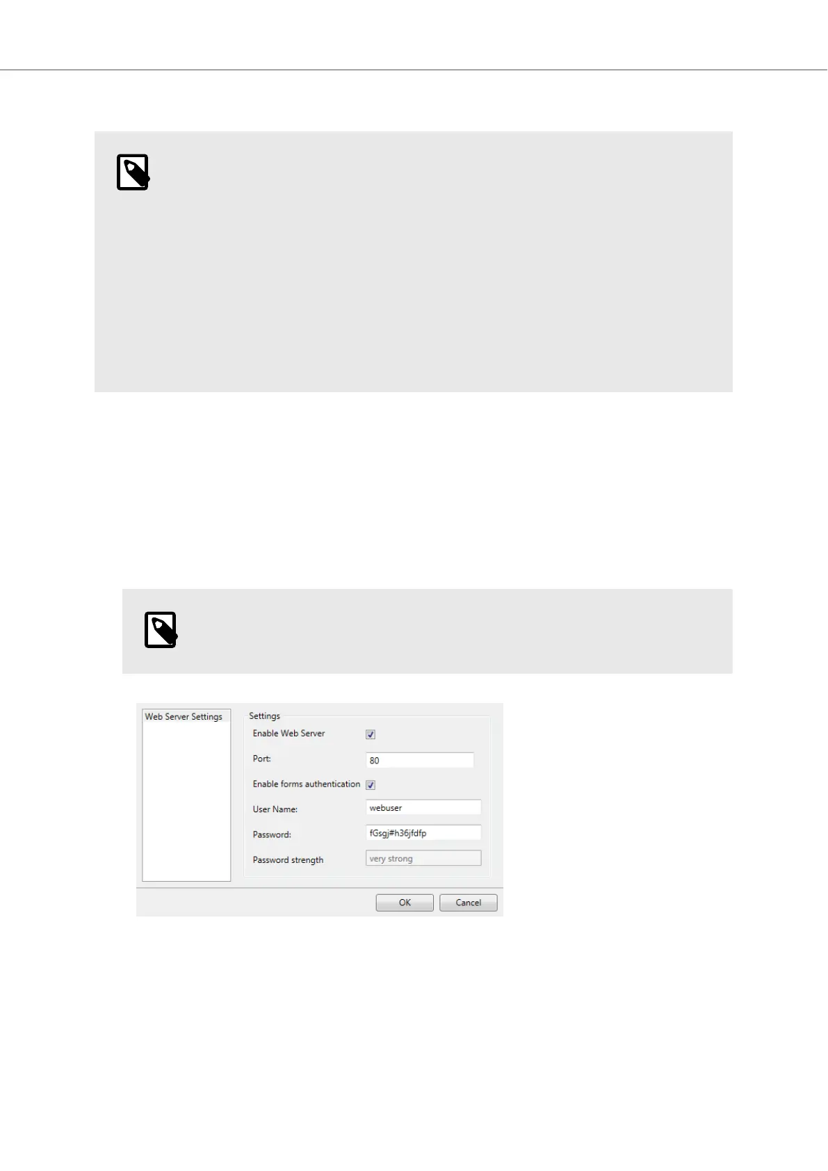 1. Open Web server configuration from System ribbon tab. Set values needed to access web server