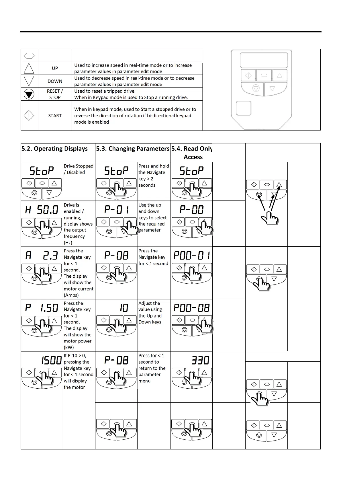 5.2. Operating Displays 5.3. Changing Parameters