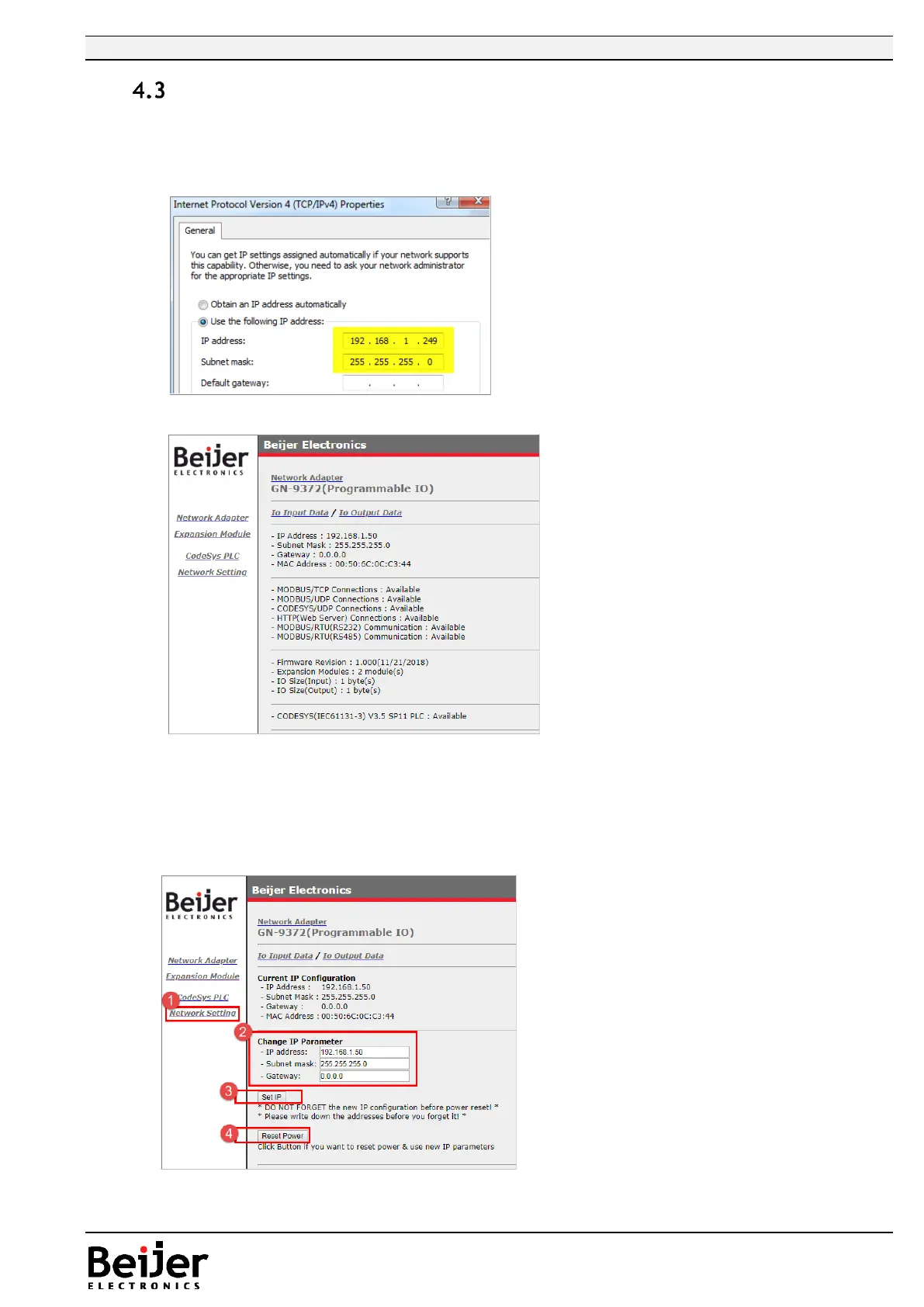 • In Network Setting, you have the choice to Change/Set a new IP address