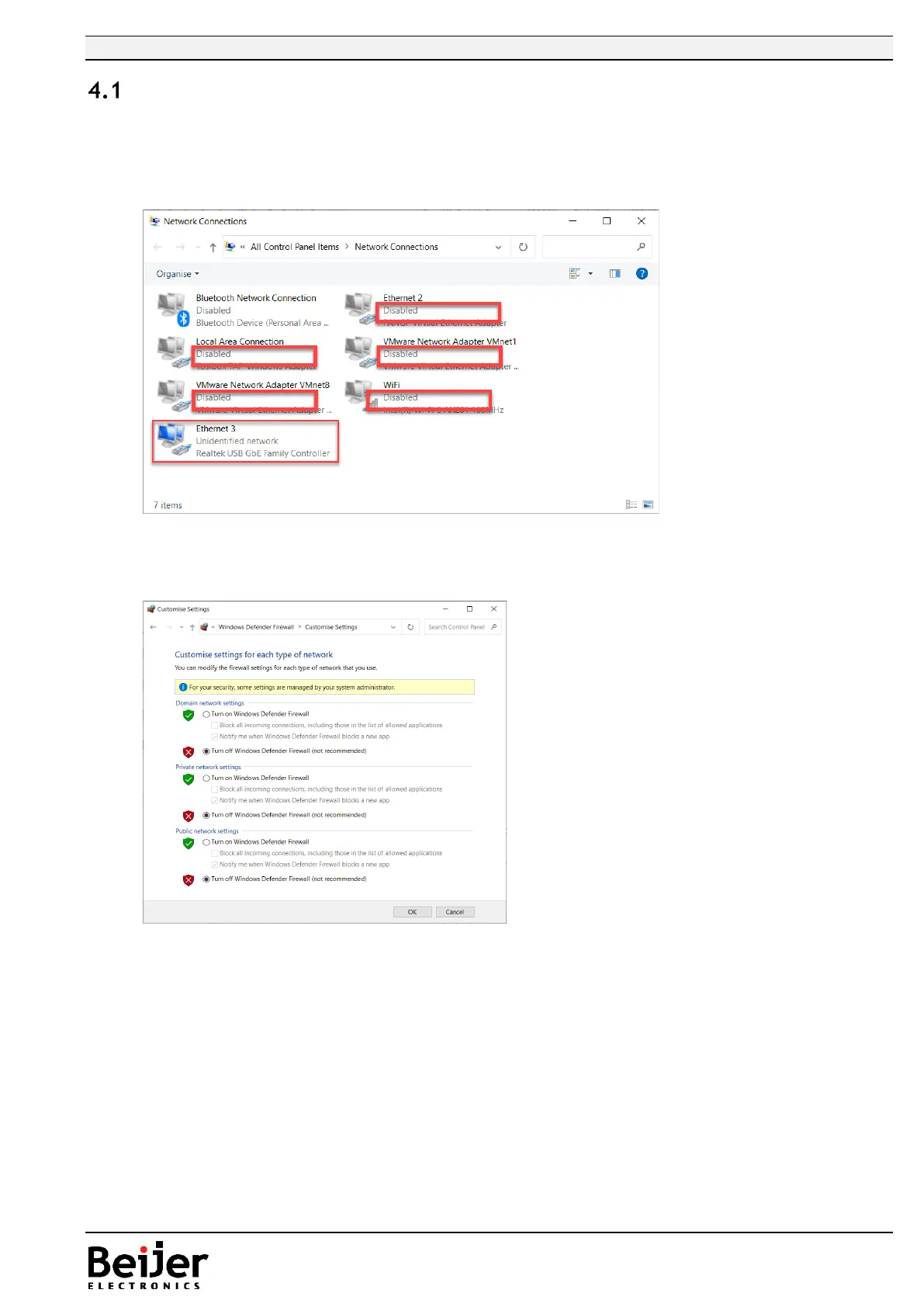 In some rare case the firewall needs to be disabled, select “Turn off…” on all networks and push