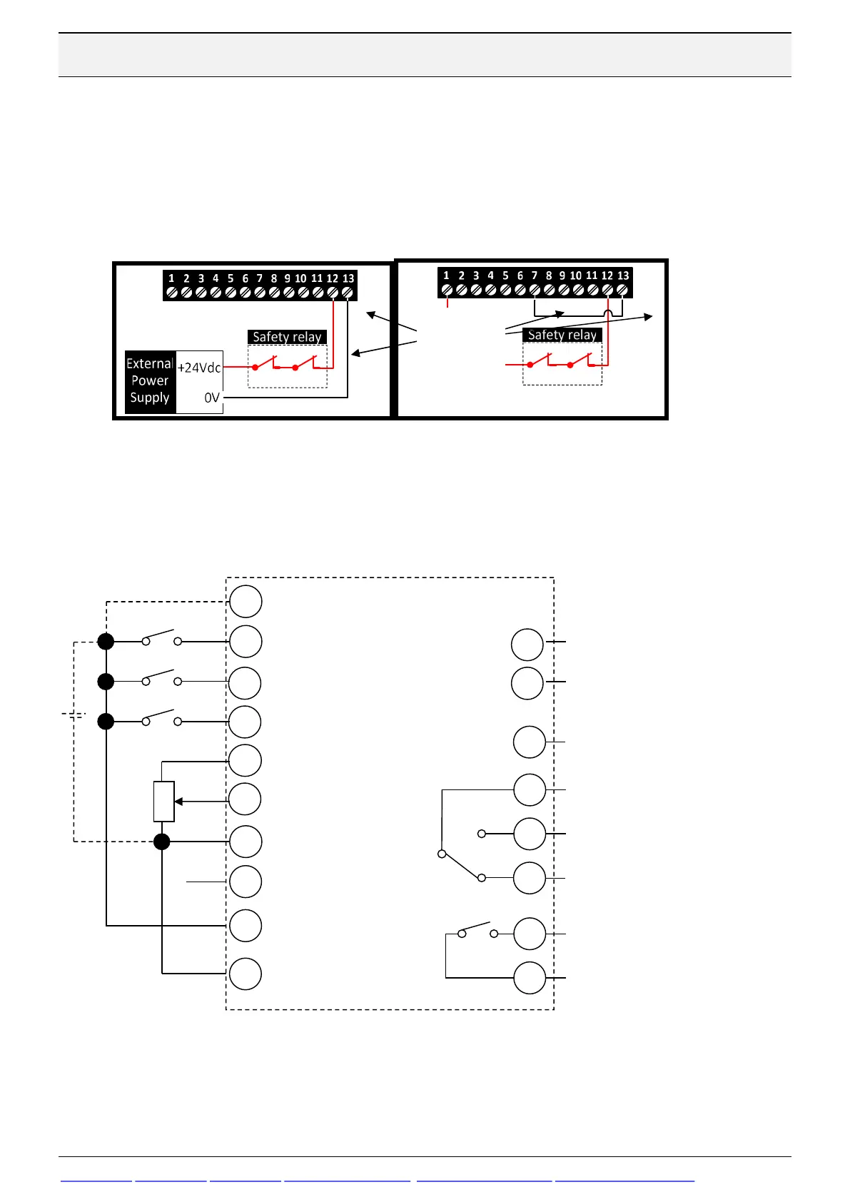 If safety is not to be used terminal 12 must be connected to terminal 1 and terminal 13