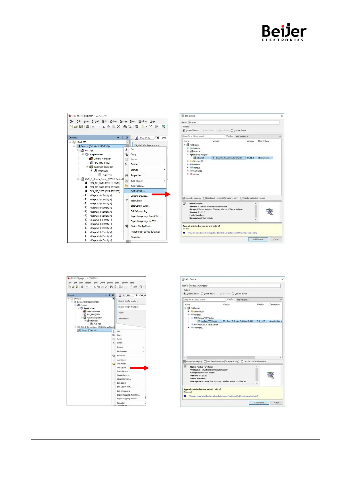 Click ‘Fieldbuses’ ‘Modbus TCP Master’ ‘Modbus TCP Master’ and ‘Add Device’ Click.