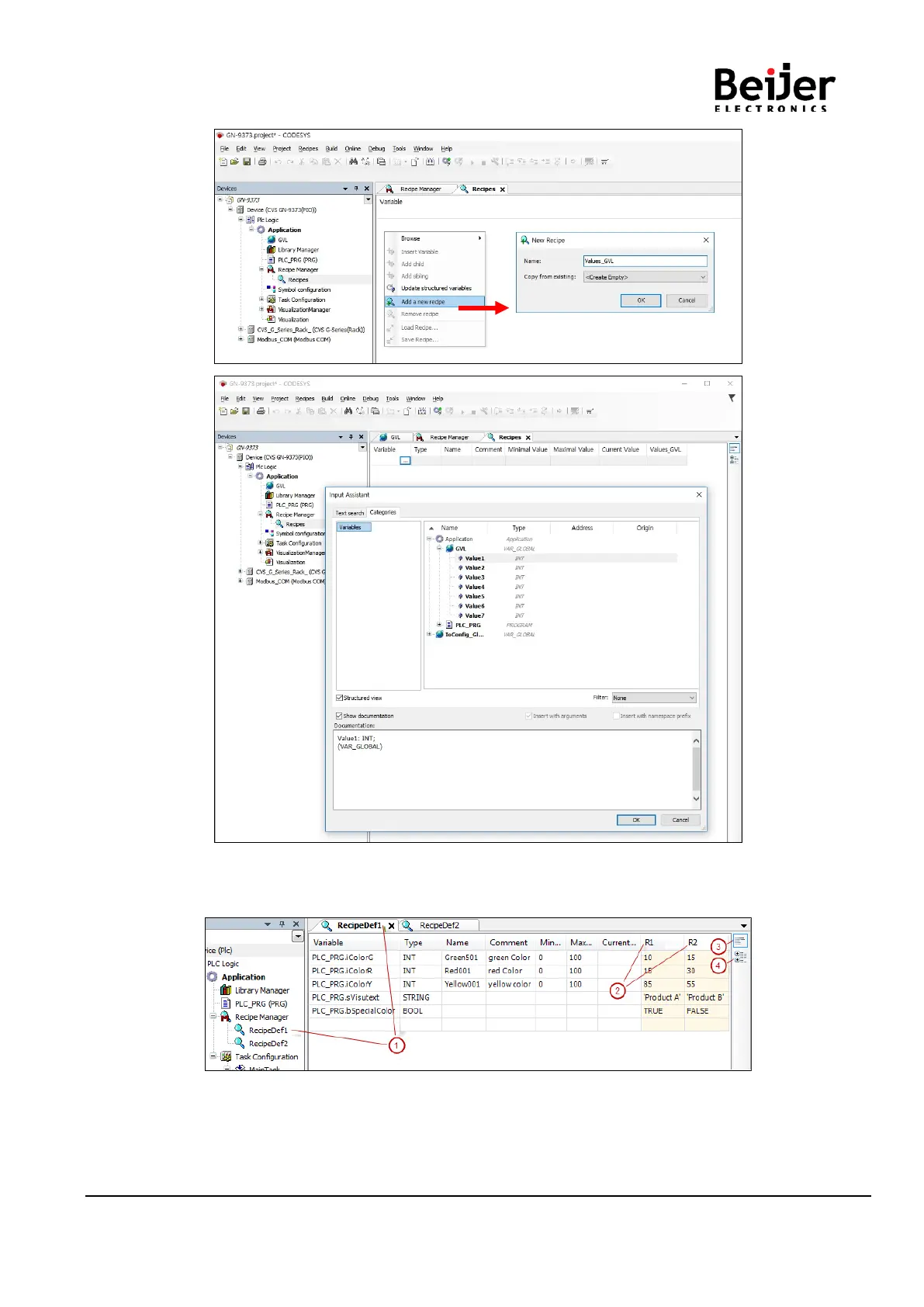 (4). In the structured view, CODESYS groups variables according to structure.