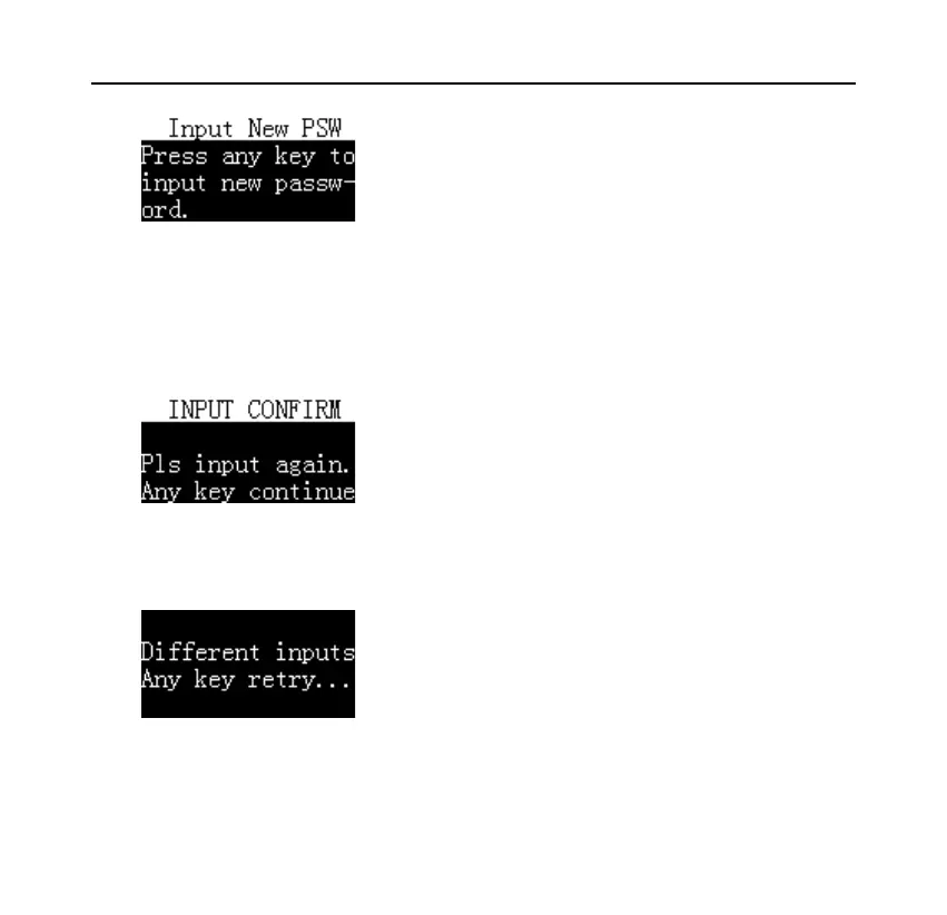 Press any key, and then enter the new password, the maximum length is 6 digits,