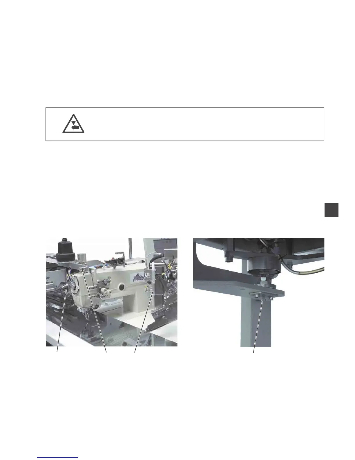 Do not reach into the cutout of the table top when the machine head is