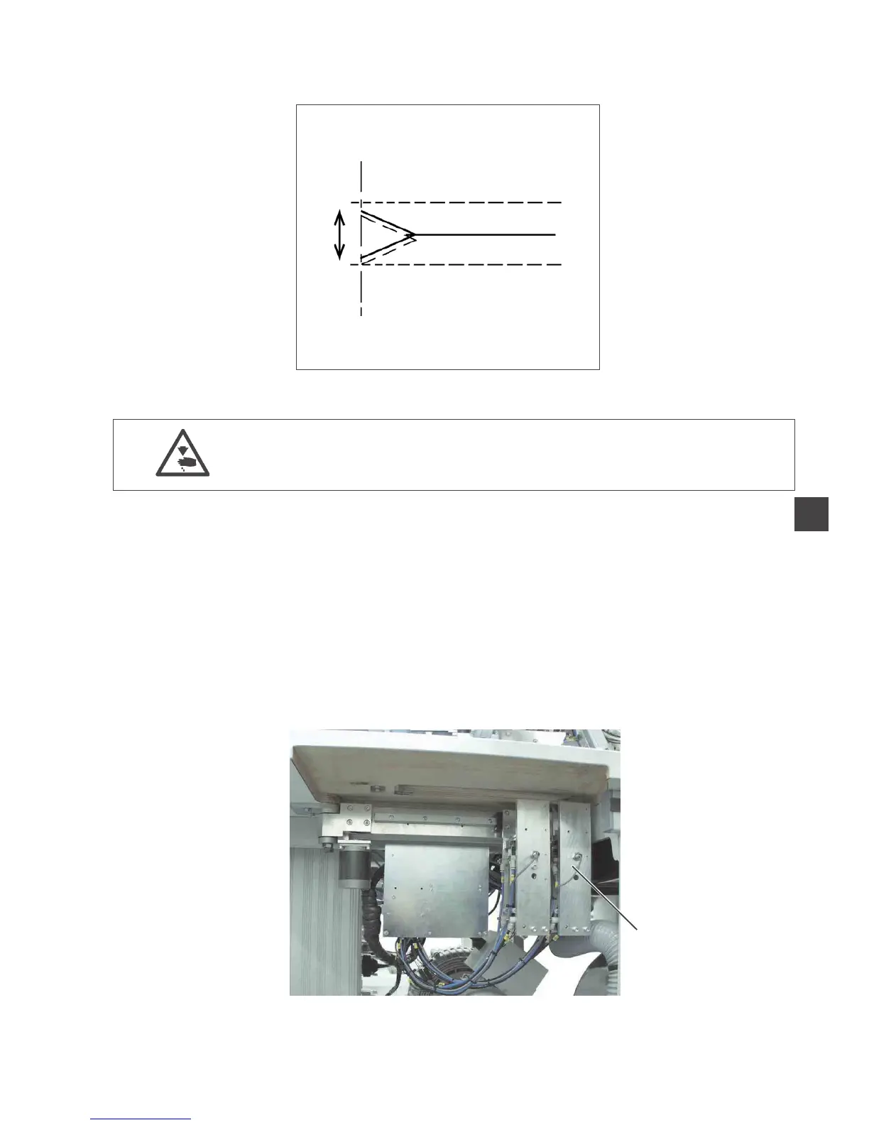 Adjust the corner knife station only with the sewing unit switched off.