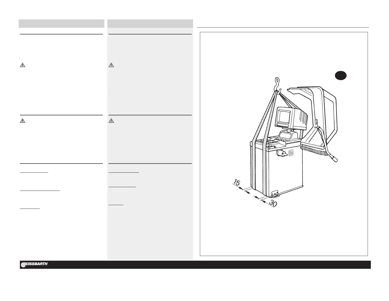 Per le modalità di imbragamento e sollevamento della macchina, dotarsi di 2