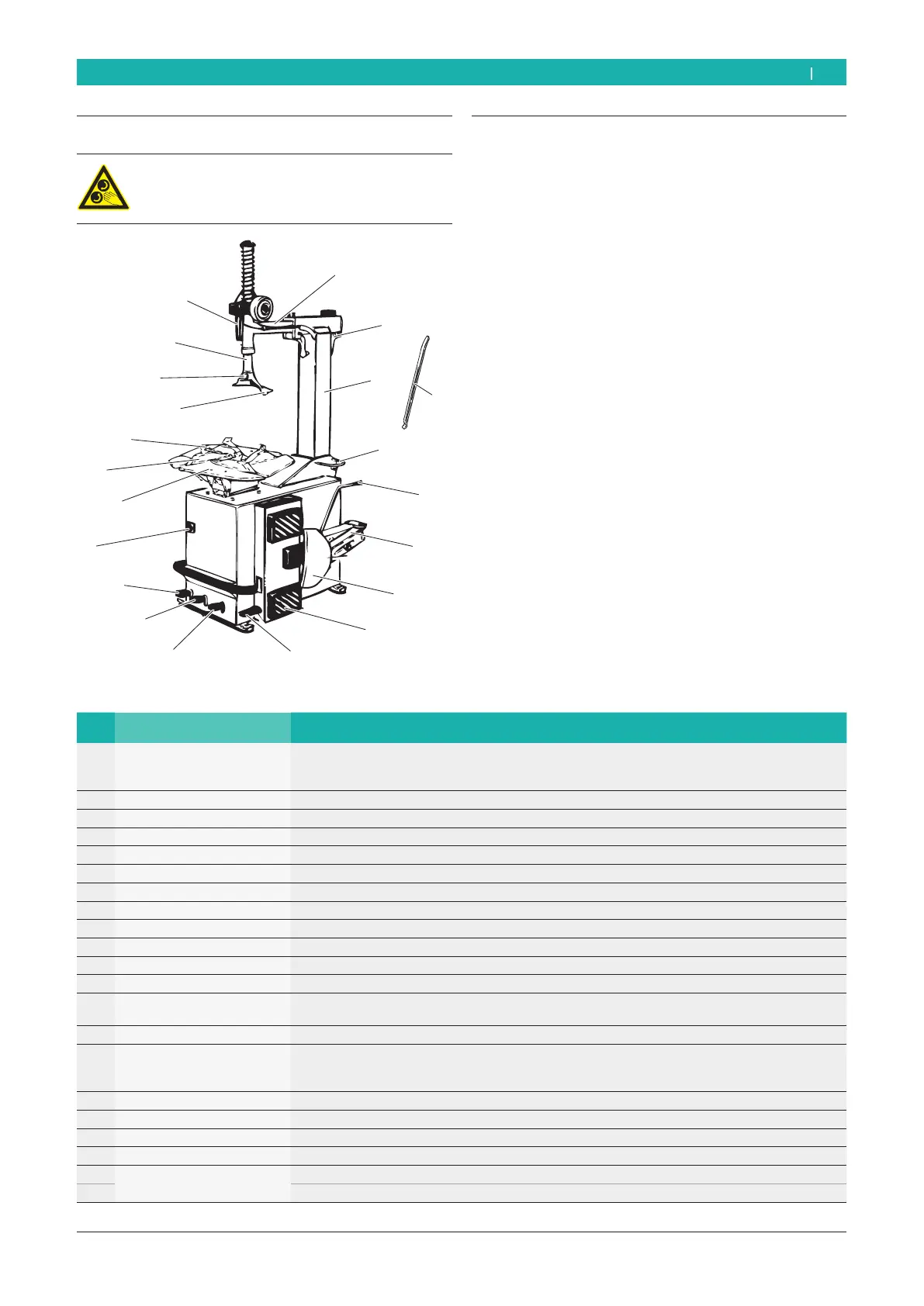 20 Bead lifting lever Lifting of the tire edge in demounting and mounting phases.
