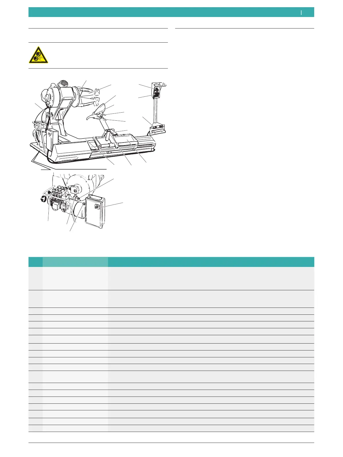 9 Braço operador Posicionamento da ferramenta de montagem e do disco descolador.