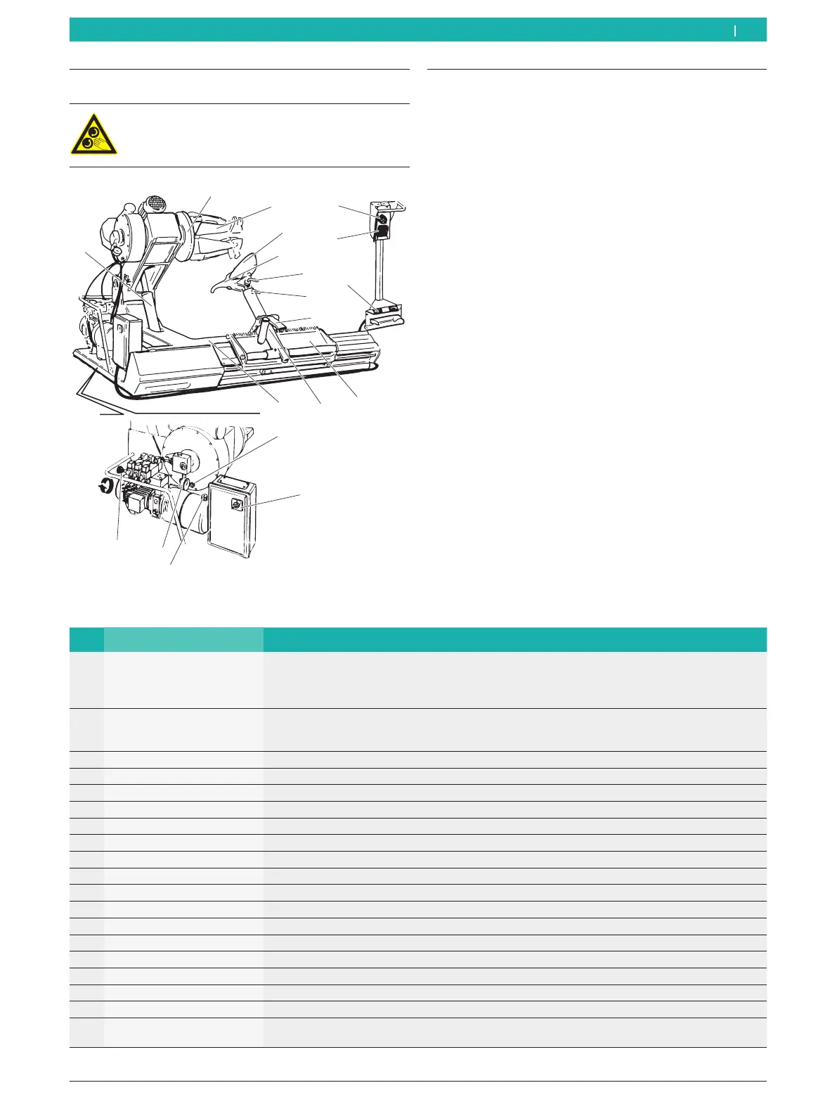 9 Working arm Positioning of the mounting tool and of the bead breaking disk.