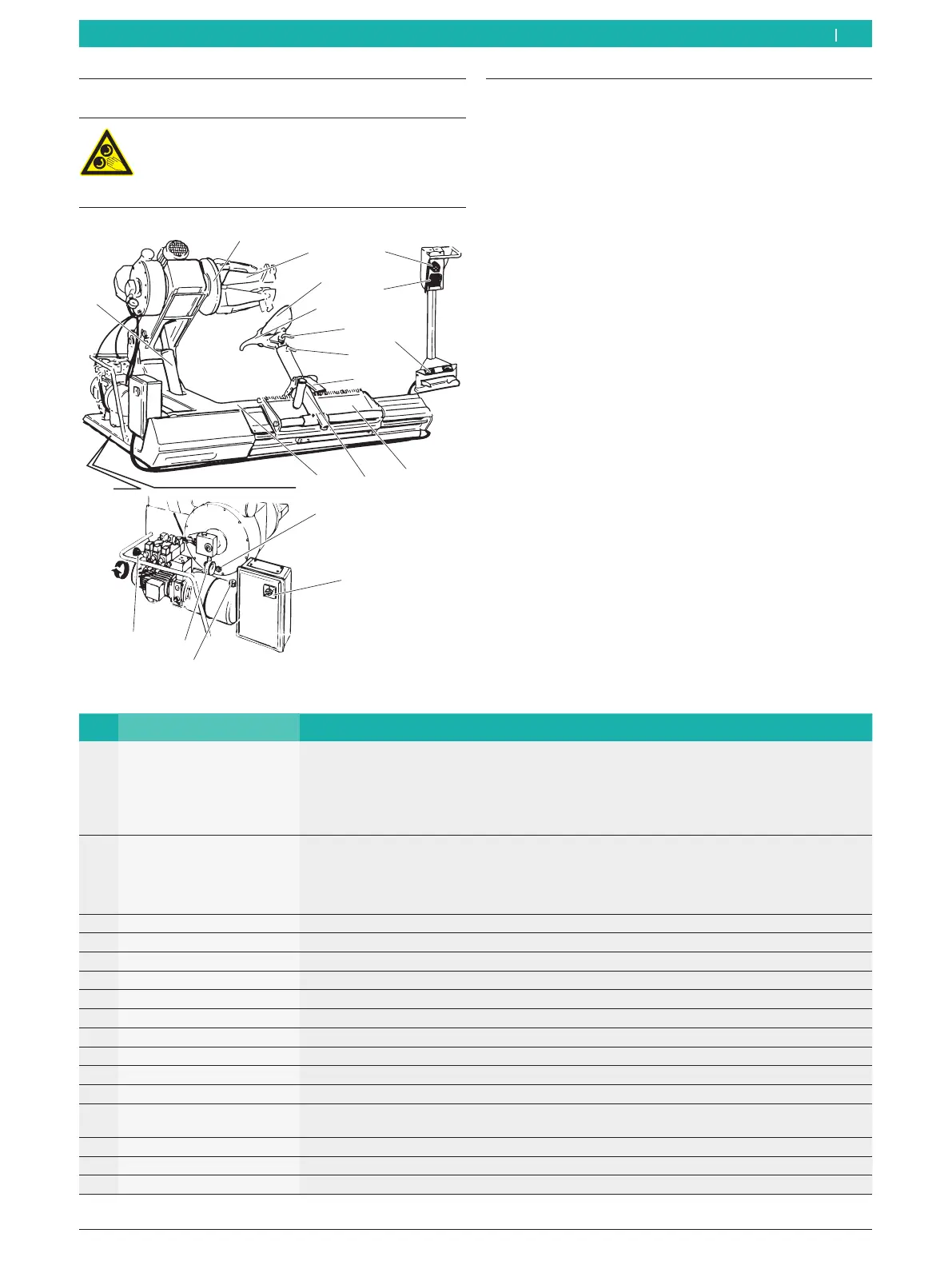9 Montagearm Positionierung des Montagearms und der Reifenabdrückscheibe.