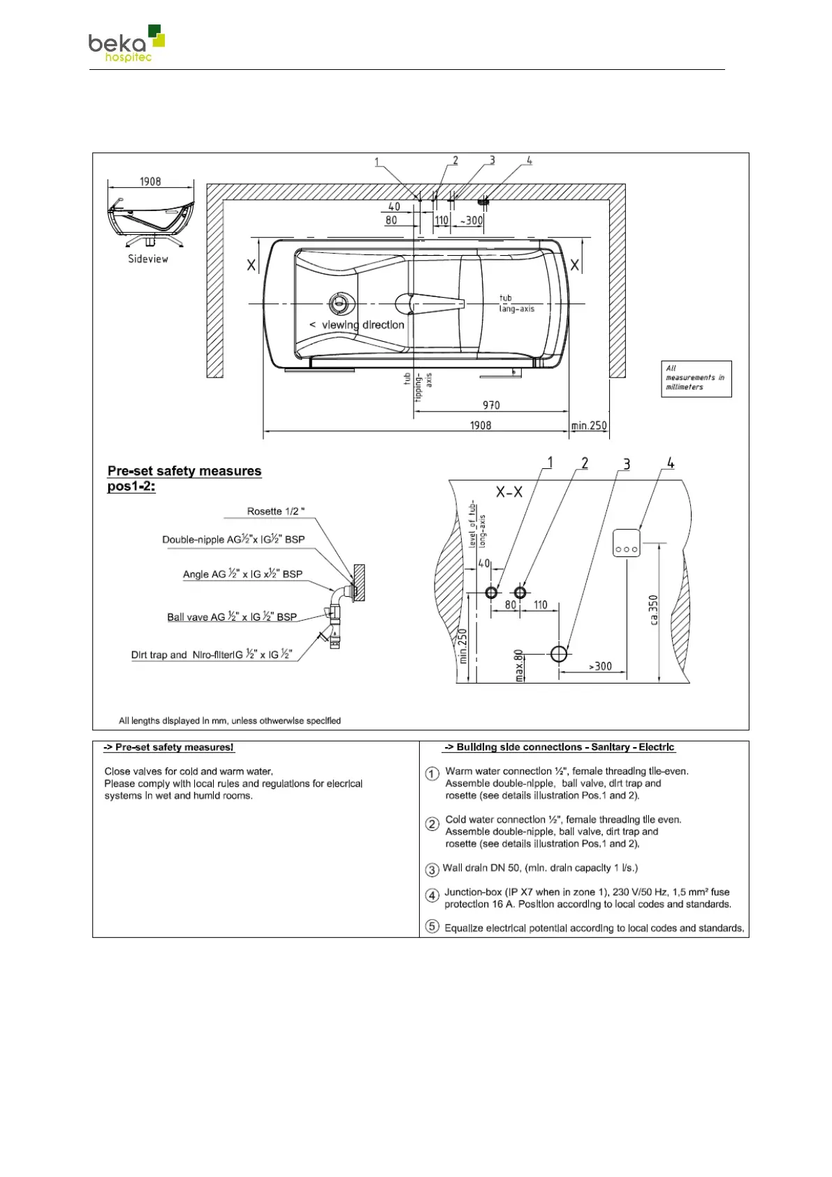 Beka Hospitec AVERO Motion - Wiring Diagram; Connection at the Side