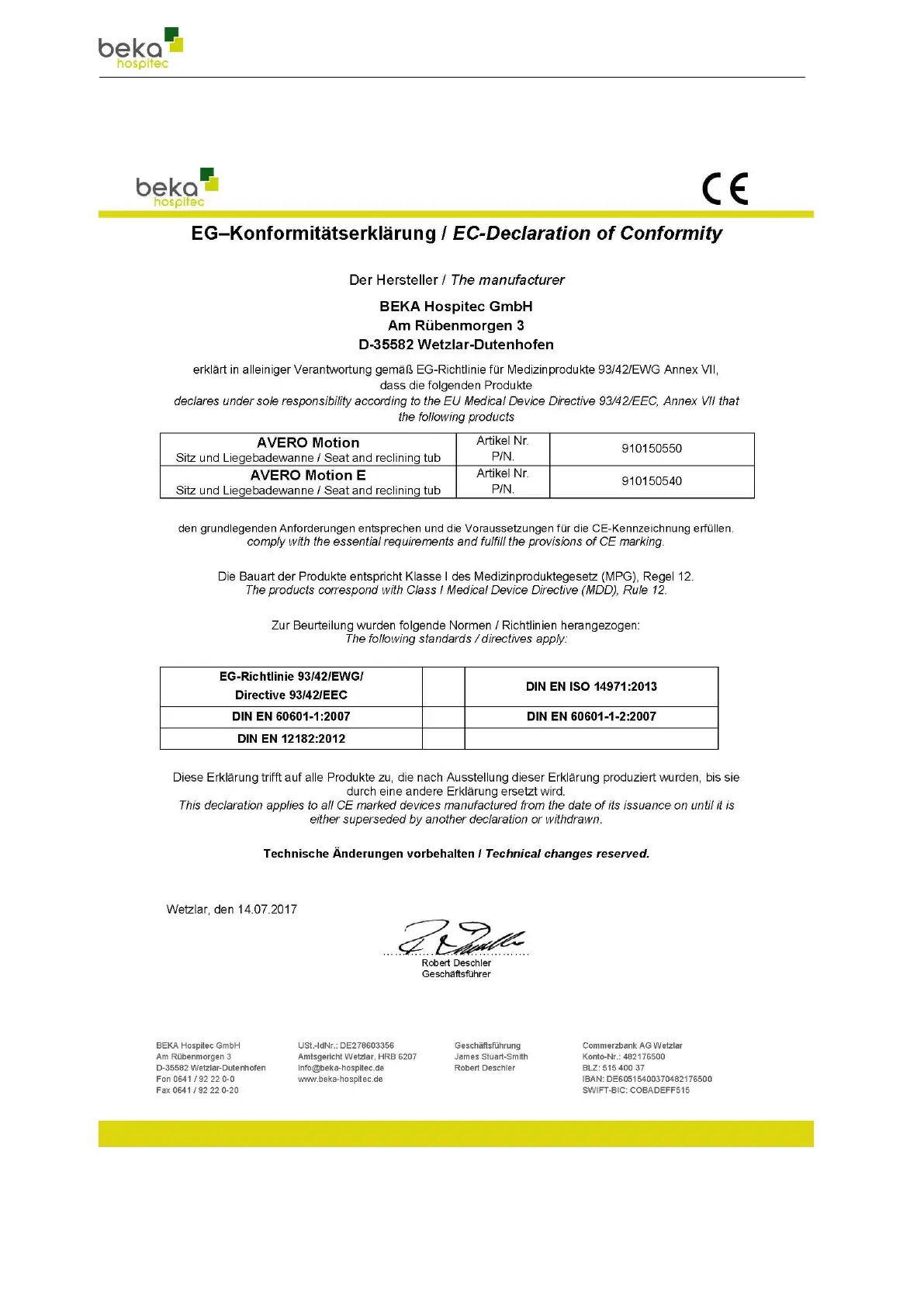 Beka Hospitec AVERO Motion - Declaration of Conformity