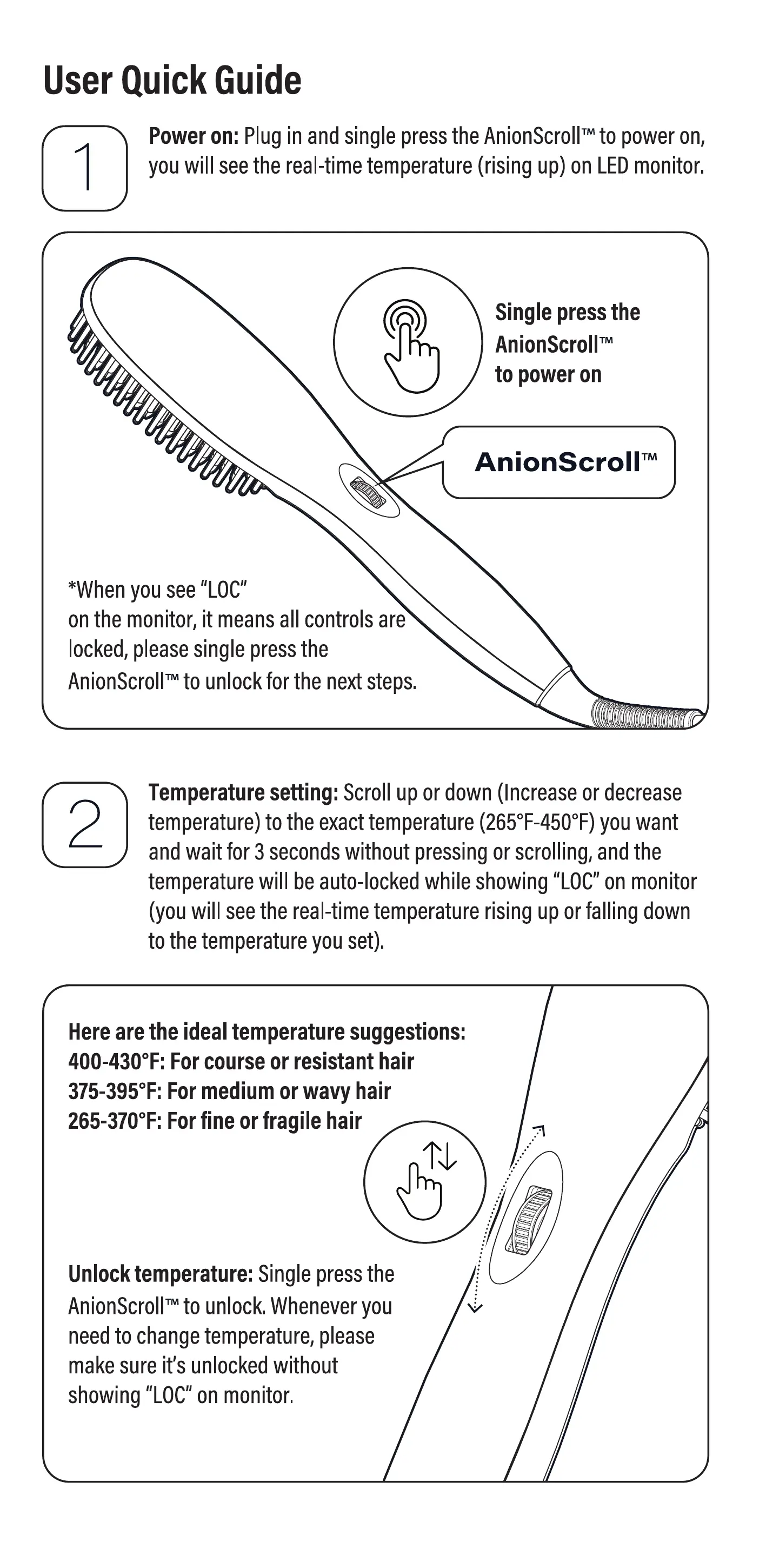 Power on: Plugin and single pressthe AnionScrolFto poweron,