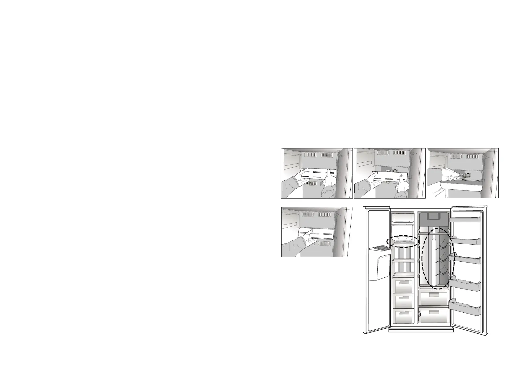 ** To remove a freezer drawer, pull it as far as possible, and then tilt it upwards,