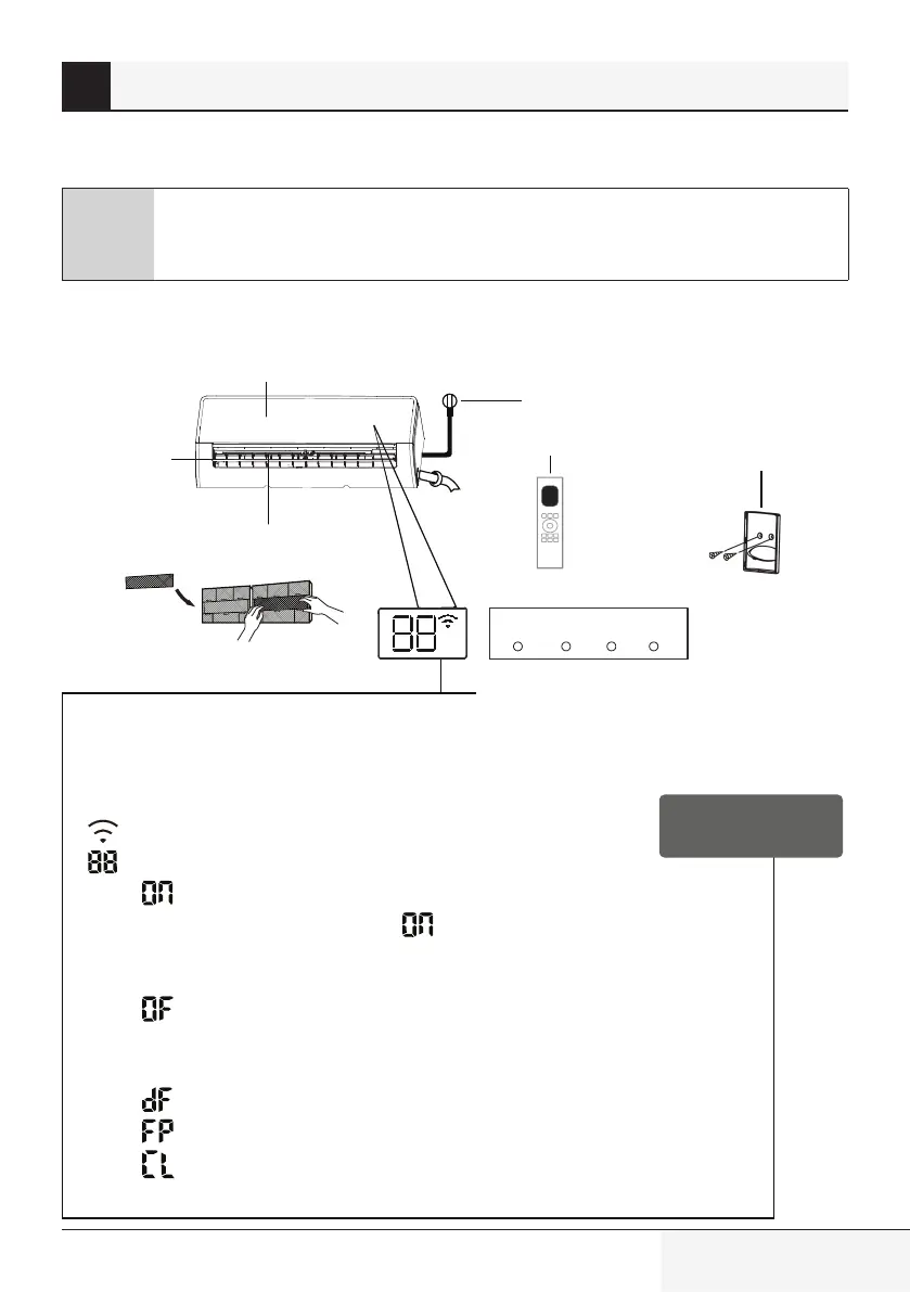 FRESH, HygieneMax, SWING, TURBO, ECO, or SILENCE feature is turned on