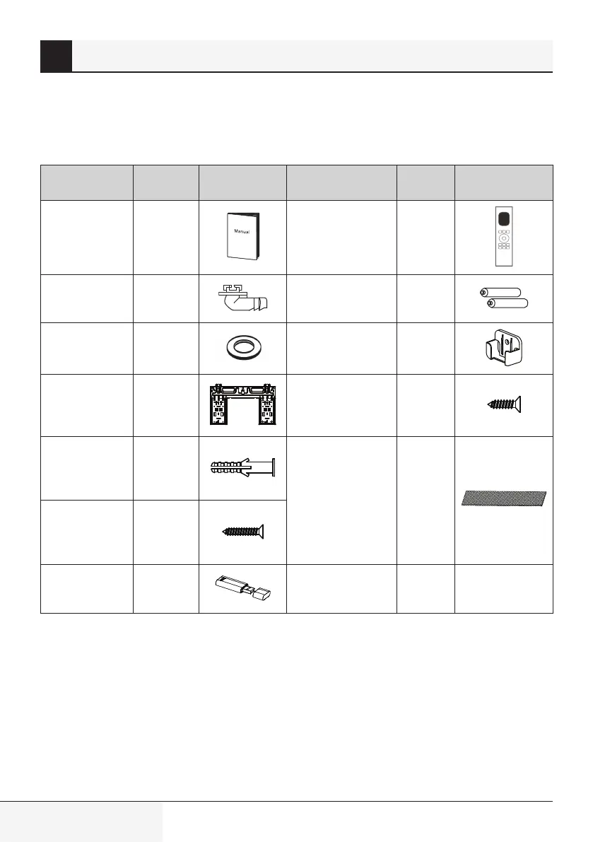 Konditsioner tizimi quyidagi yordamchi moslamalar bilan keladi. Konditsionerni o‘rnatish uchun barcha