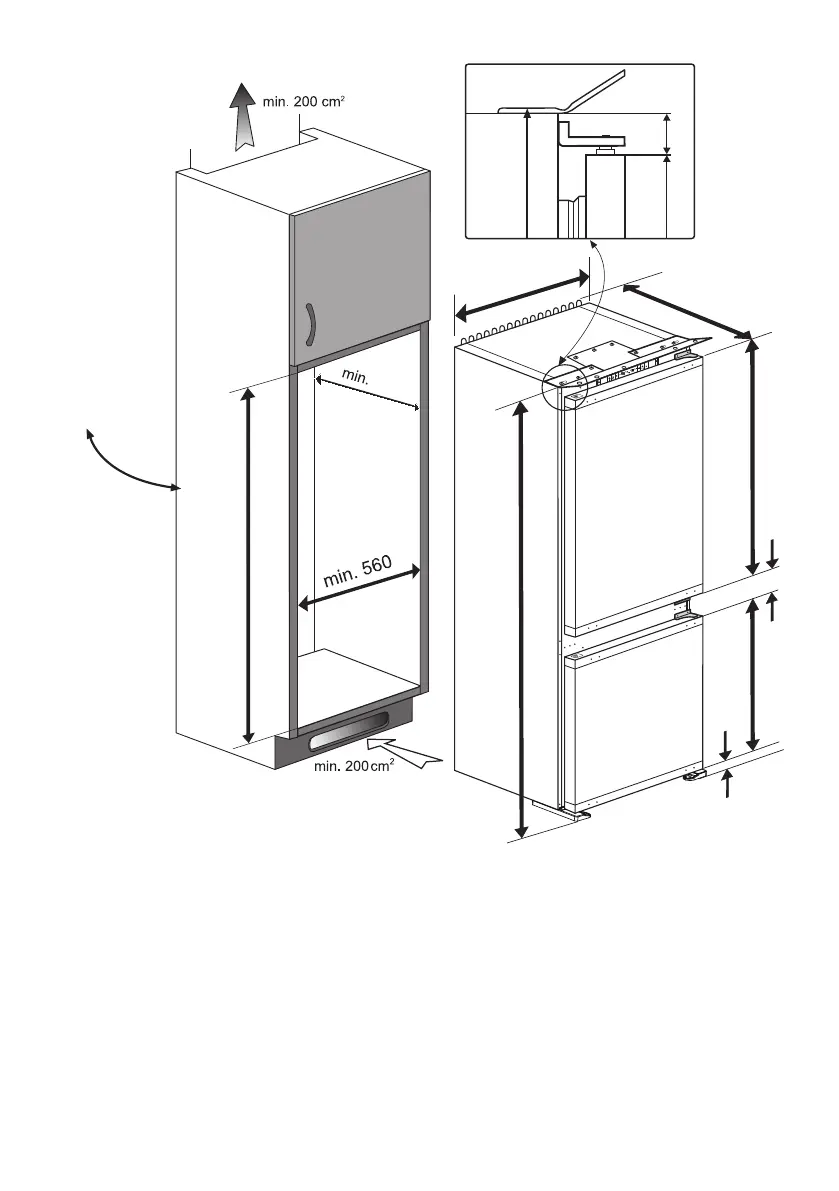 The back wall of the wooden cabinet must be left open completely to kitchen wall in order to allow sufficient