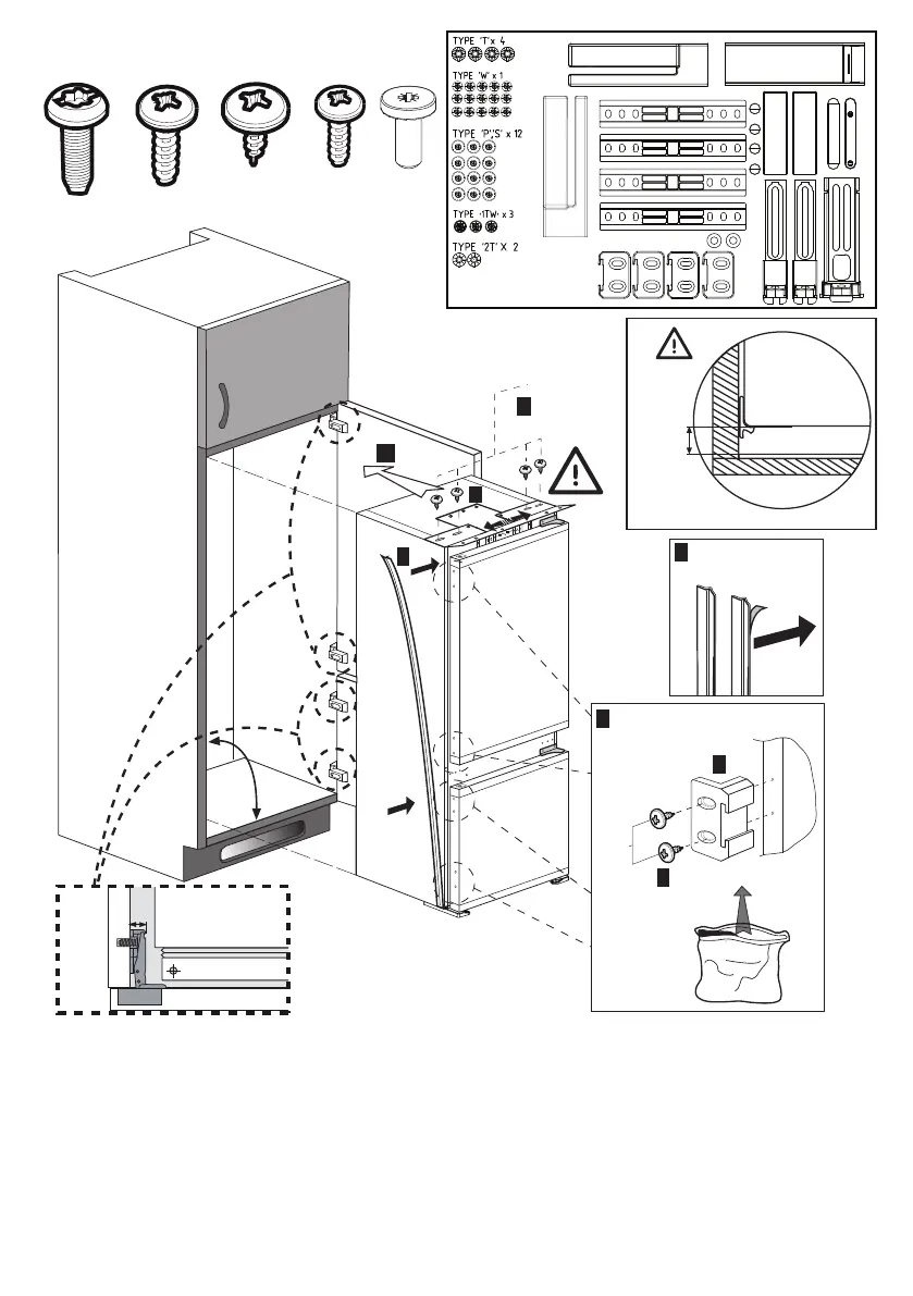 Nota: Fase di installazione per 2, viti per connettere la parte in plastica superiore non devono essere serrate, per consentire il