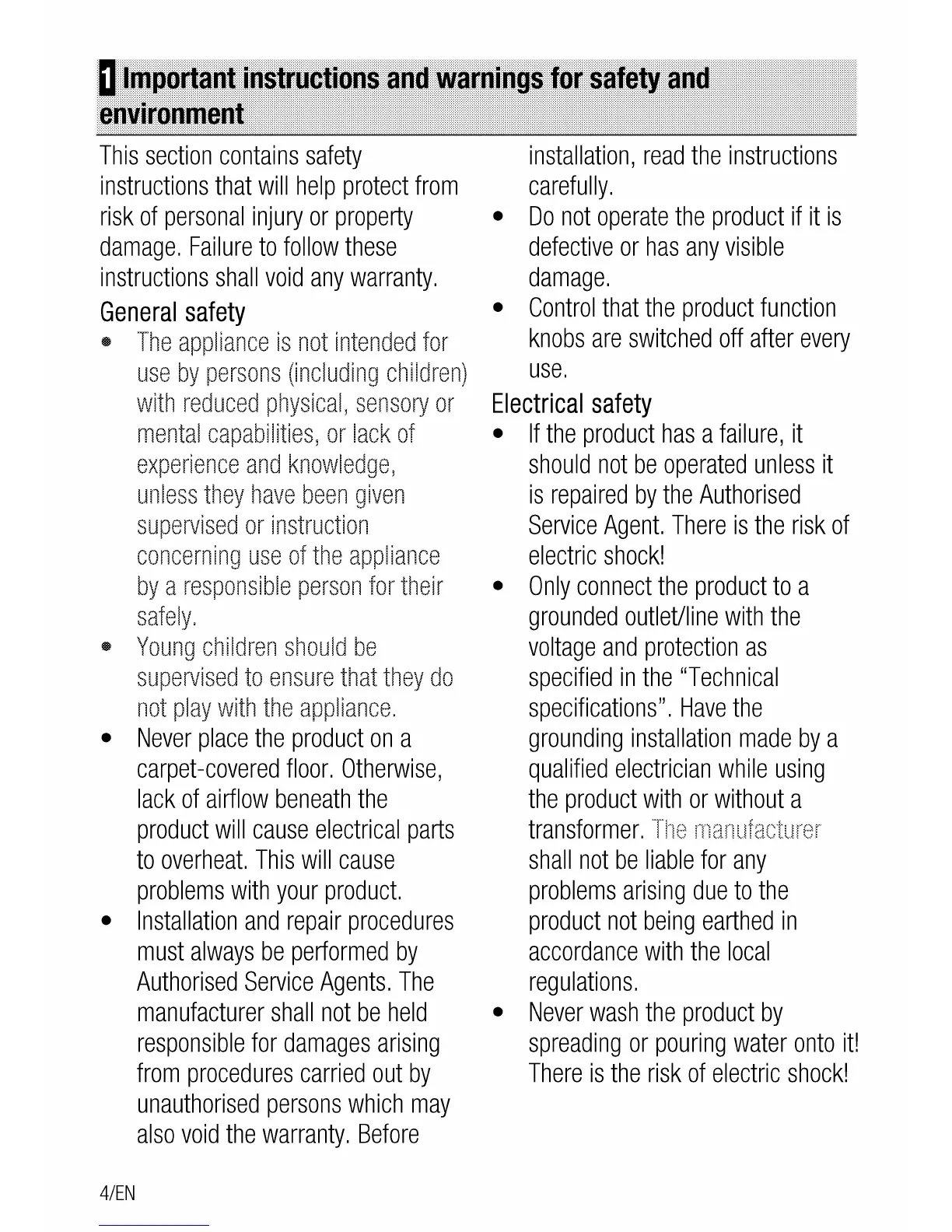 Beko BFC60EMW - For Safety and Environment; General Safety; Electrical Safety