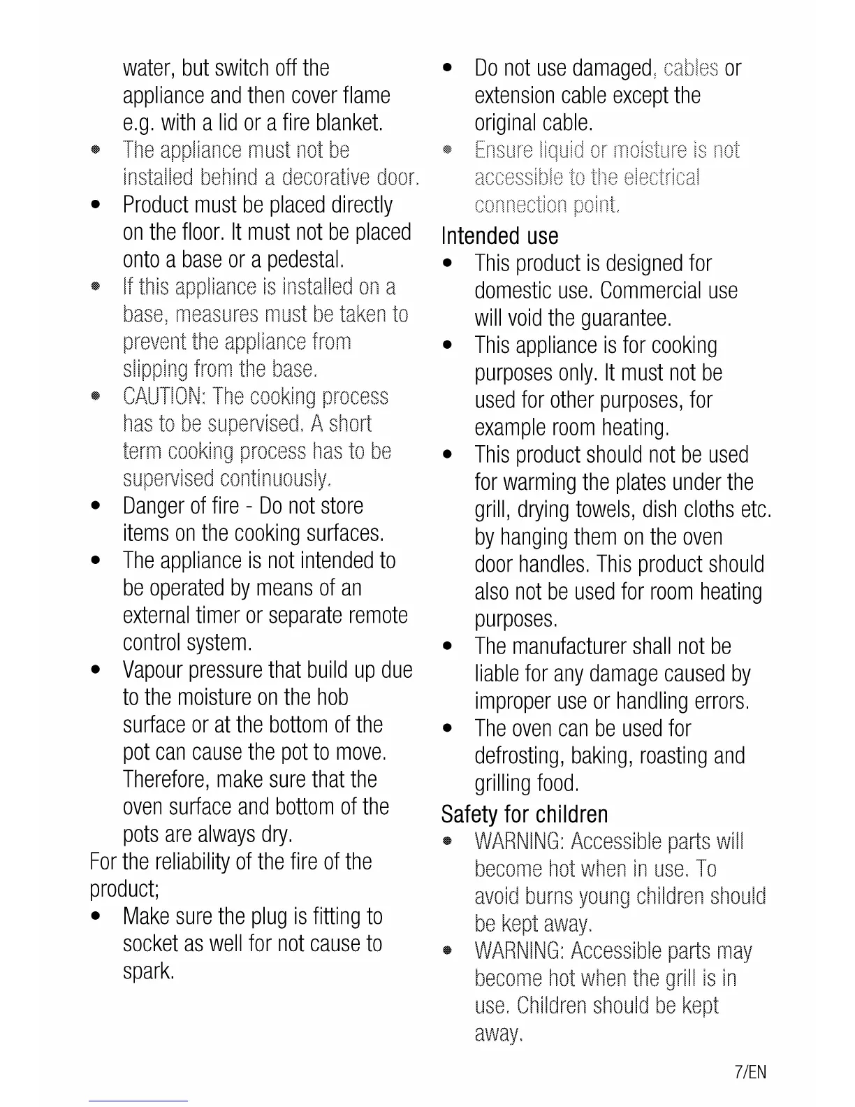 Beko BFC60EMW - Intended Use; Safety for Children