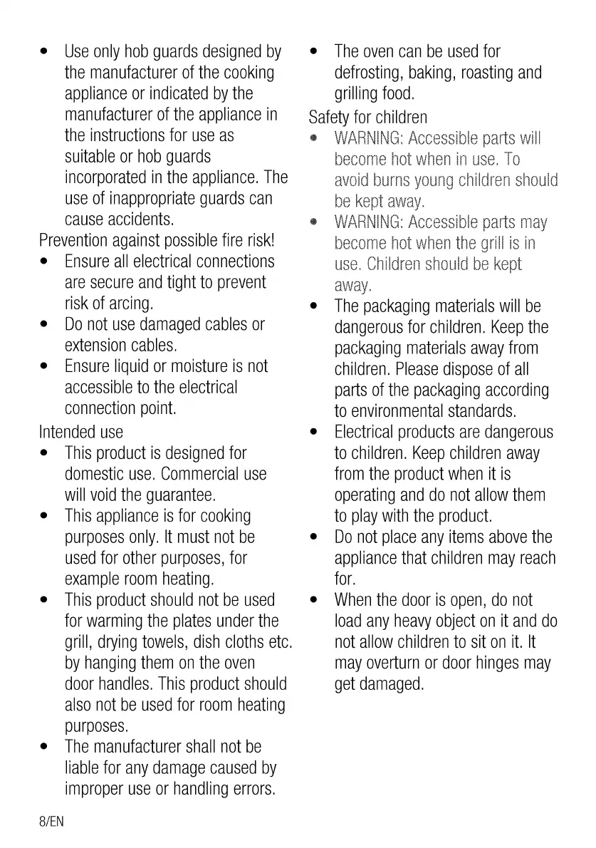 Beko BFC60VMX1 - Intended Use; Safety for Children