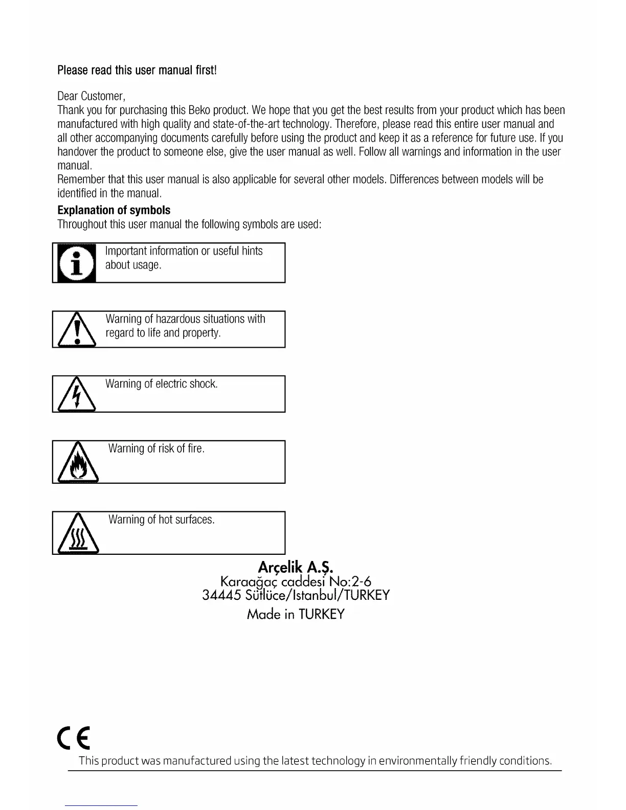 Beko BIM14300BC - Explanation of Symbols