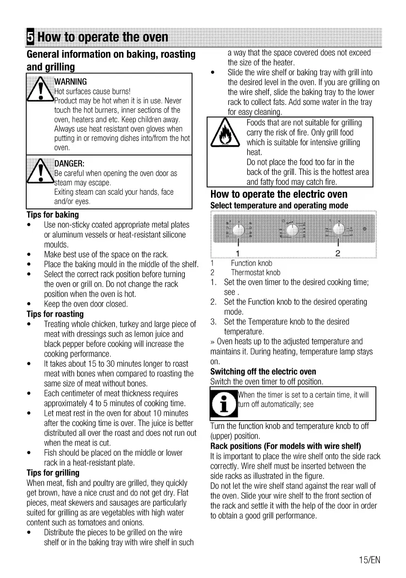 Beko BIM15100B - How to Operate the Oven; Baking, Roasting & Grilling Info; Operating the Electric Oven