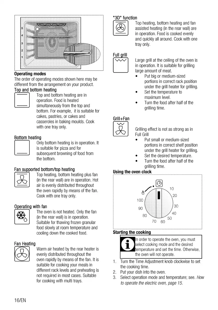 Beko BIM15100B - Operating Modes; Starting the Cooking