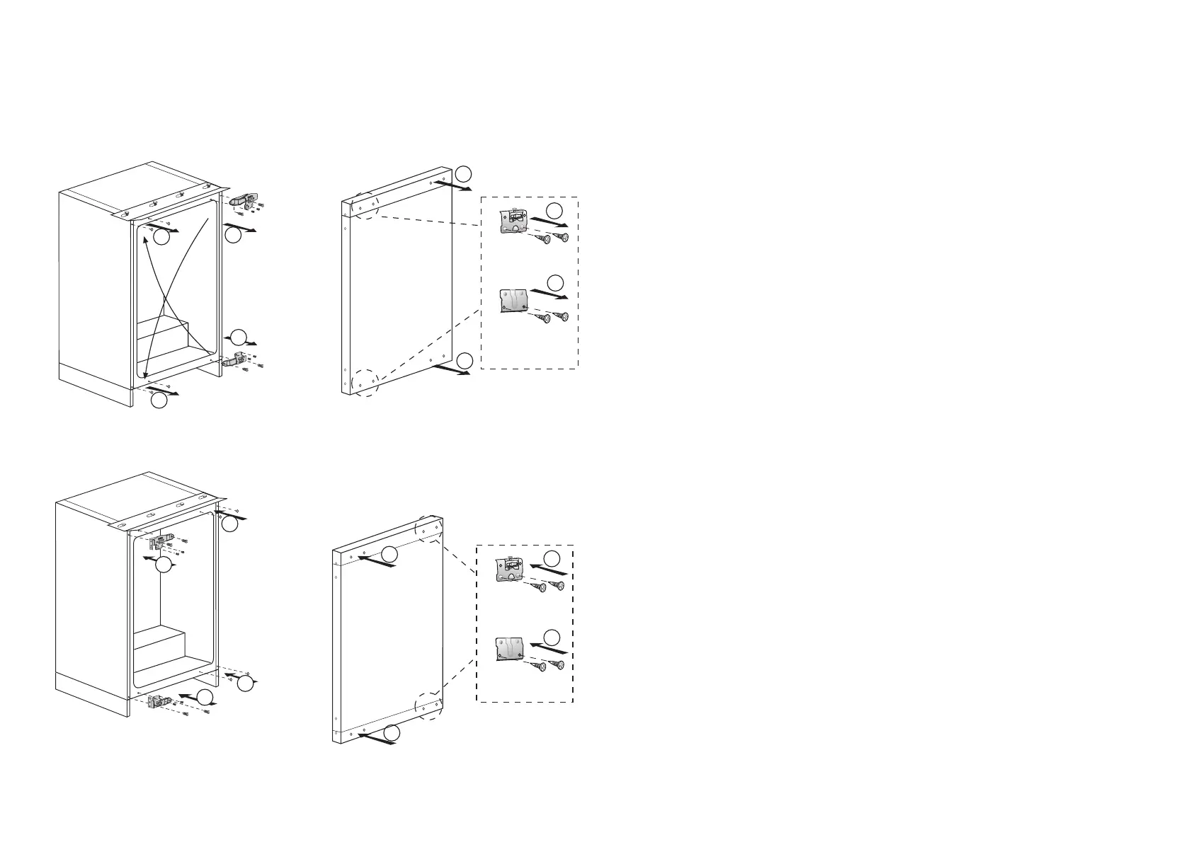 4. Unscrew the bolts and remove the furniture fixing parts from the door. (3) (4)