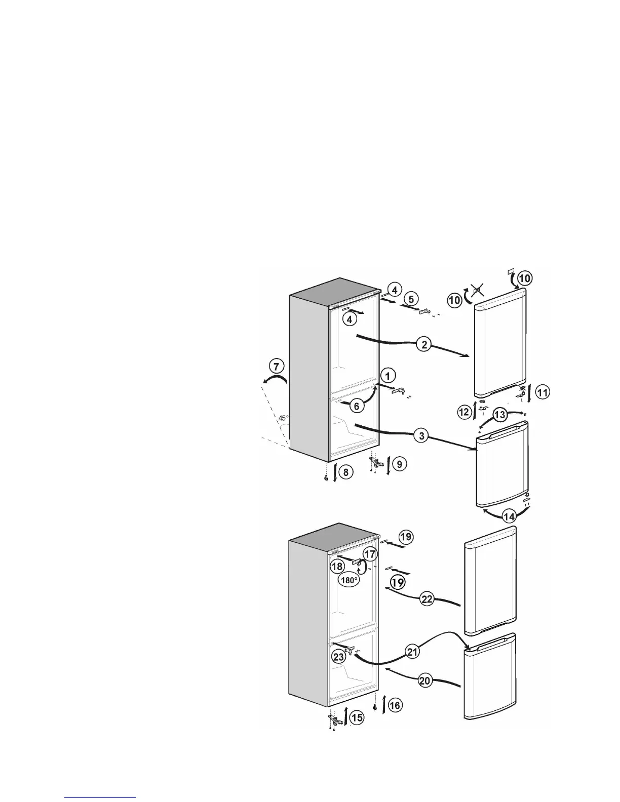 19- Rotate the top hinge 180°. Unscrew the hinge