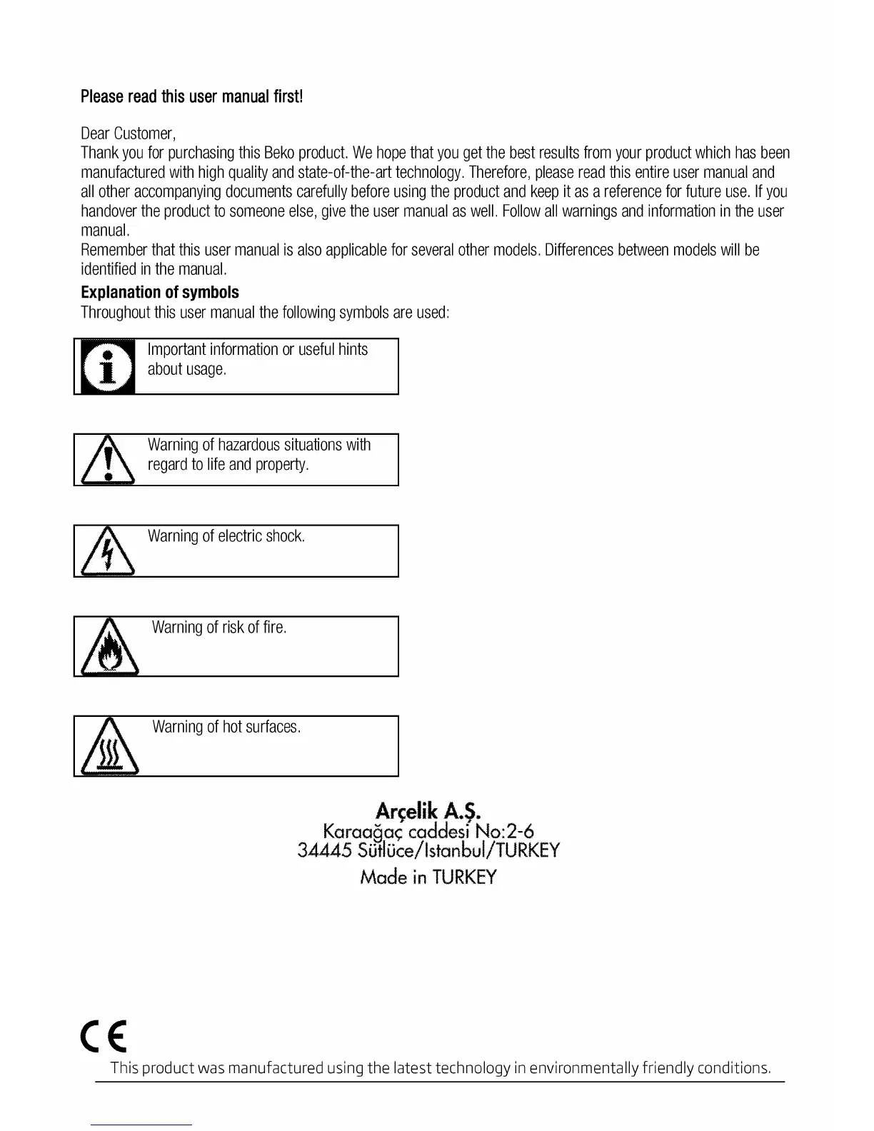 Beko cif71w - Explanation of Symbols