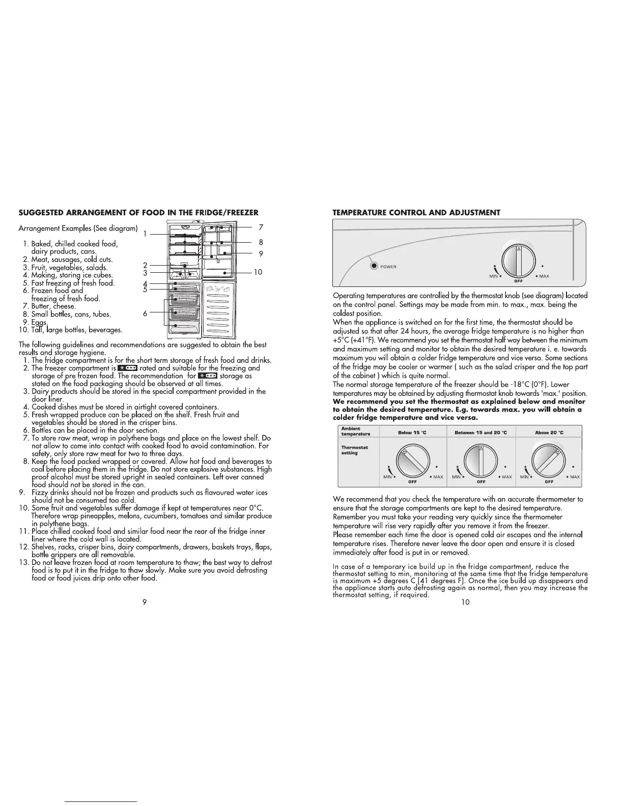 Beko CSA576 - Suggested Arrangement of Food; Temperature Control and Adjustment