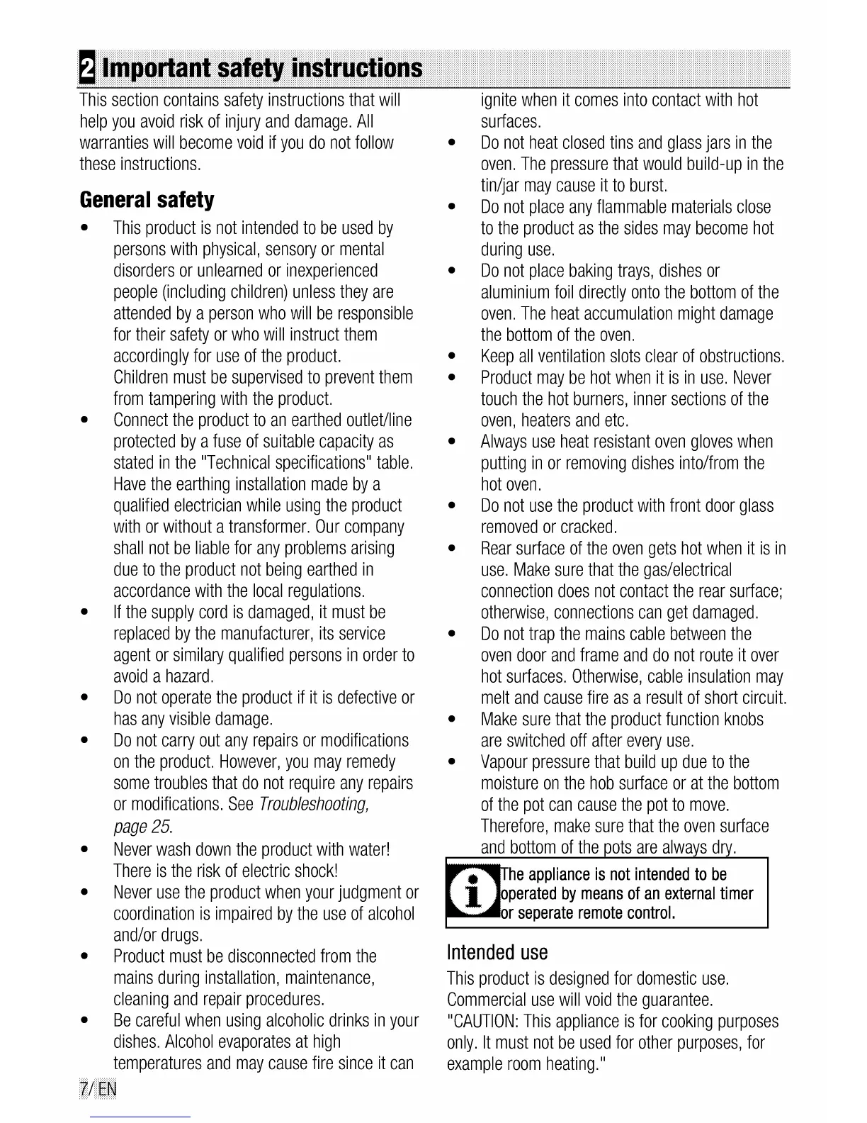 Beko CSE 57300 G - Important Safety Instructions; General Safety; Intended Use