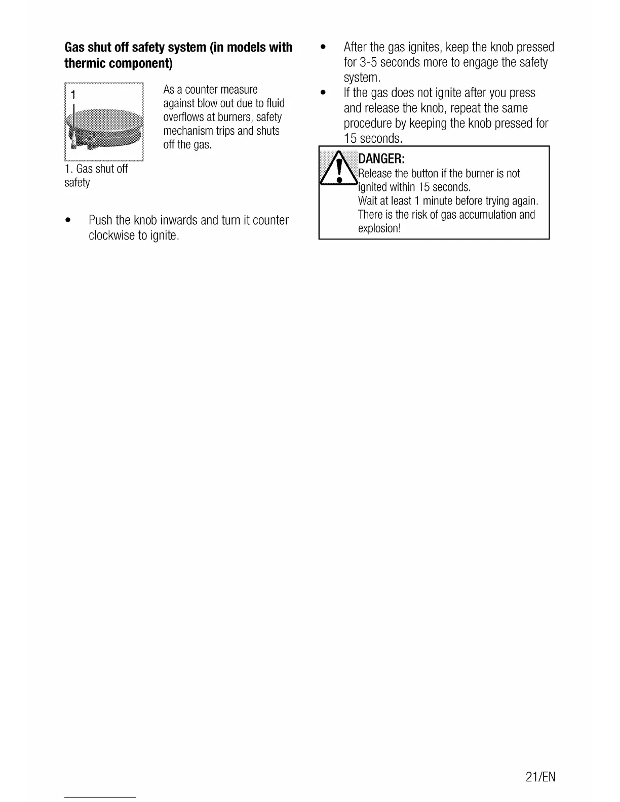 Beko CSM 62320 D - Gas Shut Off Safety System (in models with thermic component)