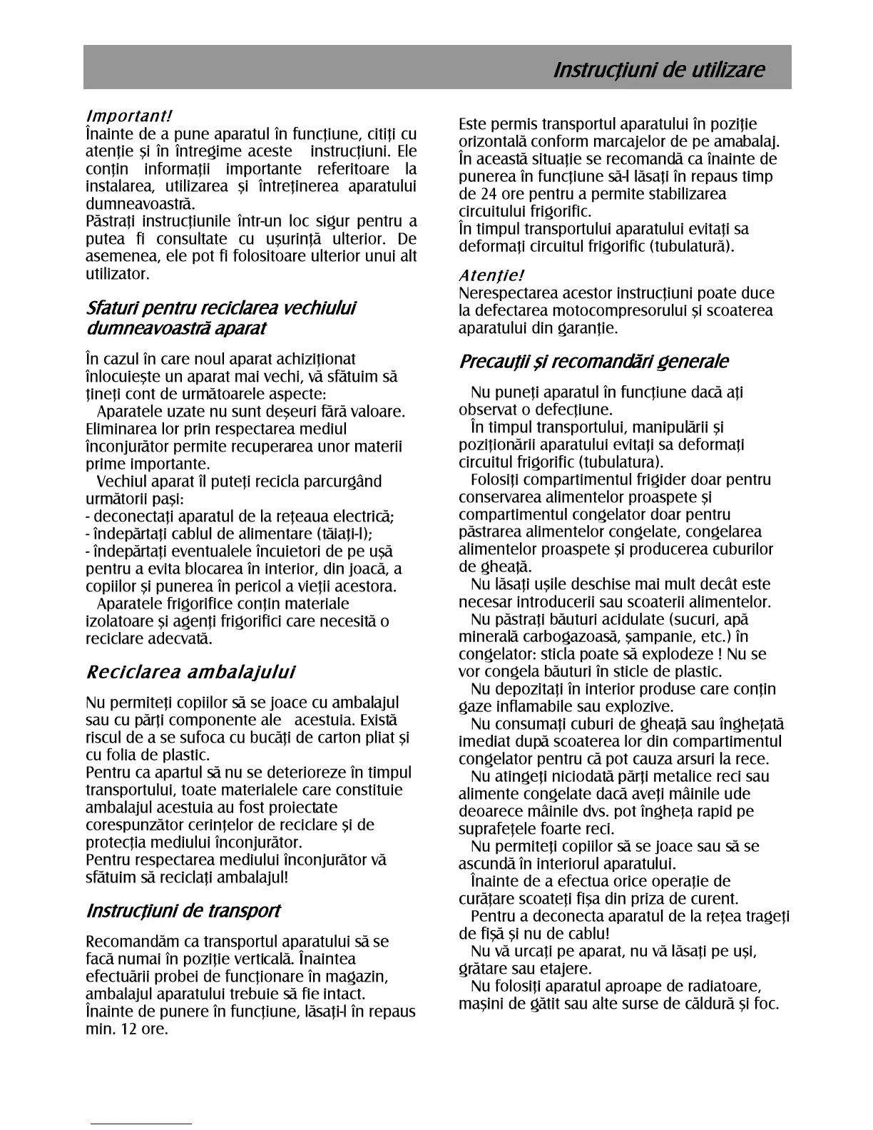 Beko DBK386WDR+ - Pre-Operation, Transportation, and Safety; Safe Transportation and Handling; General Usage Precautions